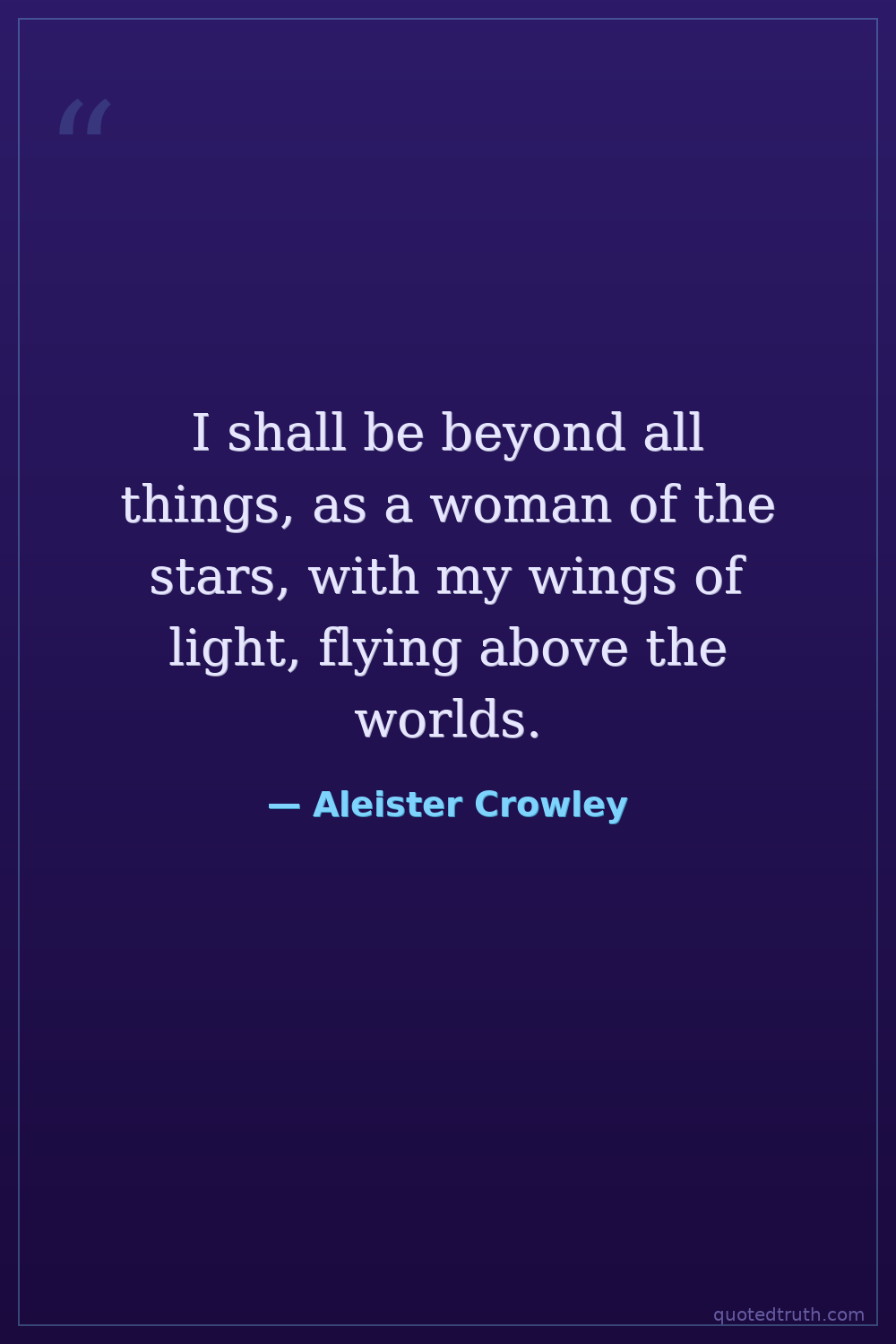 I shall be beyond all things, as a woman of the stars, with my wings of light, flying above the worlds.
