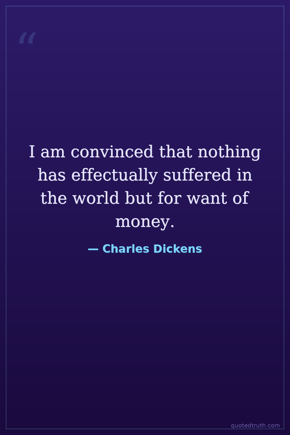 I am convinced that nothing has effectually suffered in the world but for want of money.
