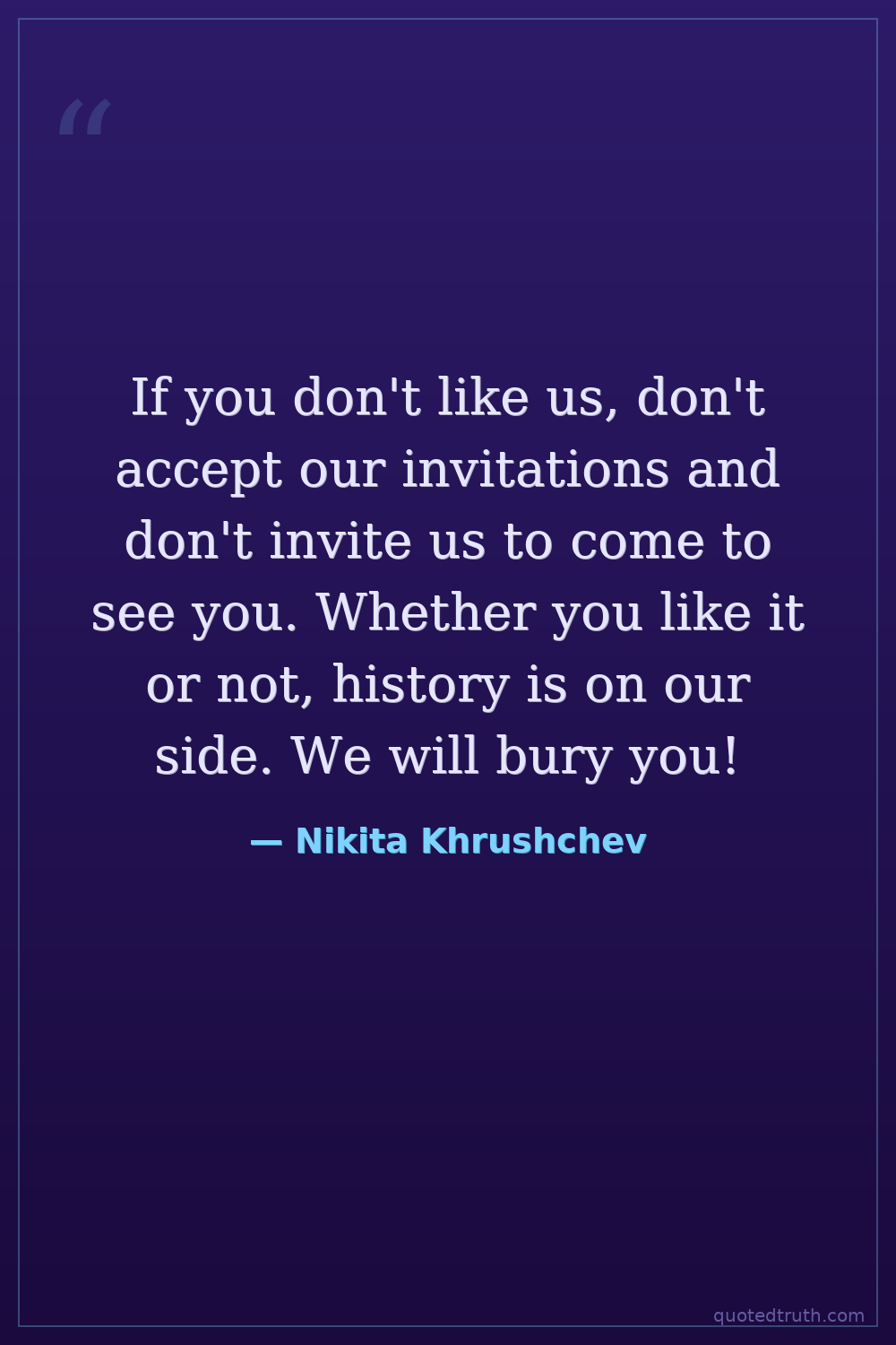 If you don't like us, don't accept our invitations and don't invite us to come to see you. Whether you like it or not, history is on our side. We will bury you!