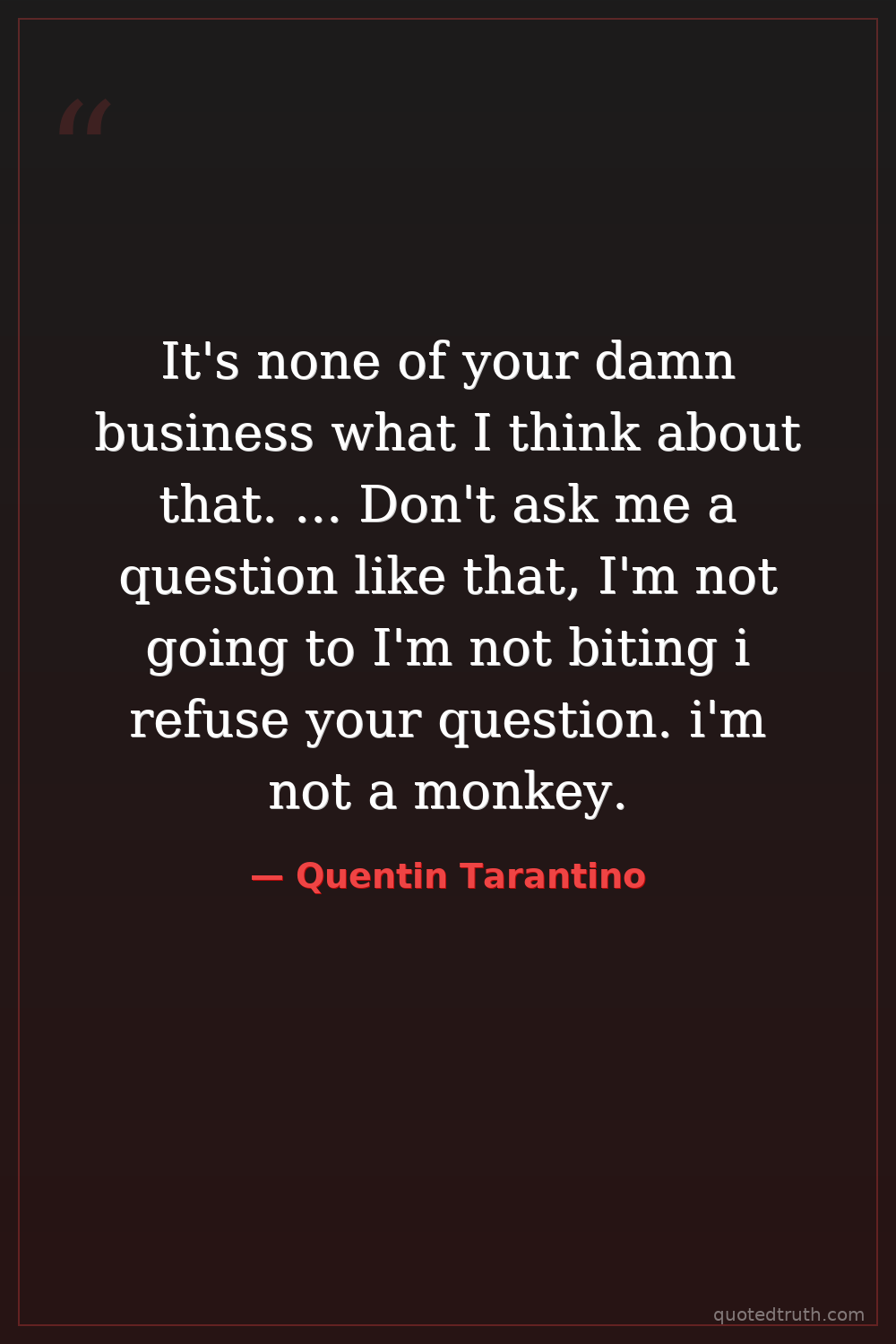 It's none of your damn business what I think about that. ... Don't ask me a question like that, I'm not going to I'm not biting i refuse your question. i'm not a monkey.