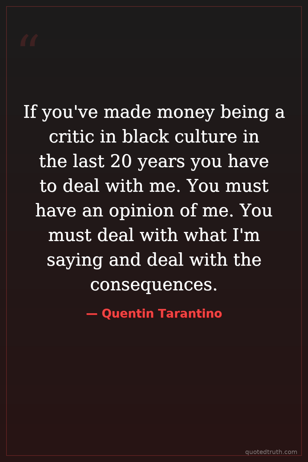 If you've made money being a critic in black culture in the last 20 years you have to deal with me. You must have an opinion of me. You must deal with what I'm saying and deal with the consequences.