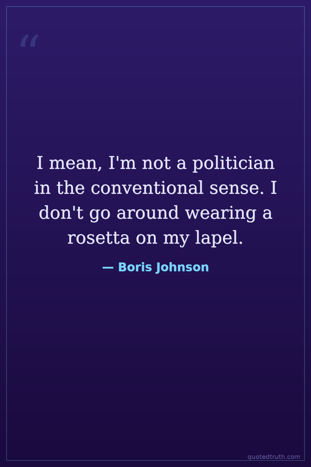 I mean, I'm not a politician in the conventional sense. I don't go around wearing a rosetta on my lapel.