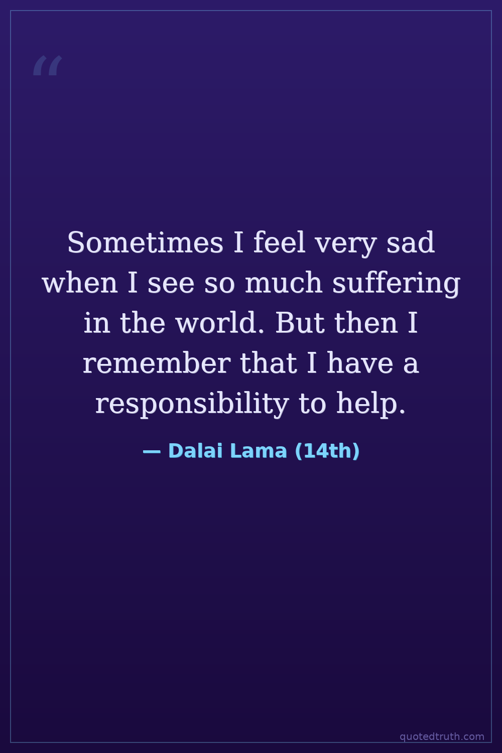Sometimes I feel very sad when I see so much suffering in the world. But then I remember that I have a responsibility to help.