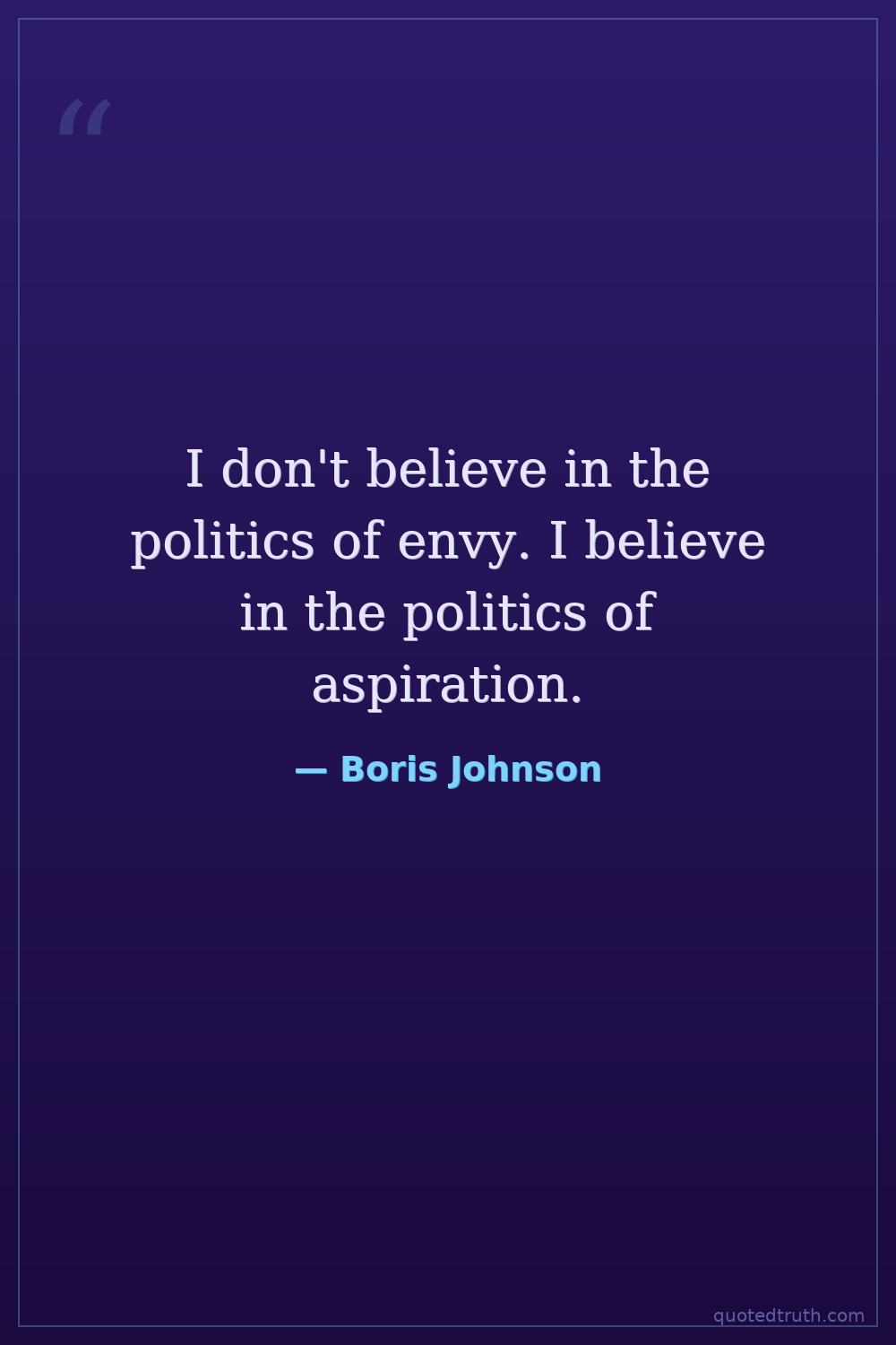 I don't believe in the politics of envy. I believe in the politics of aspiration.
