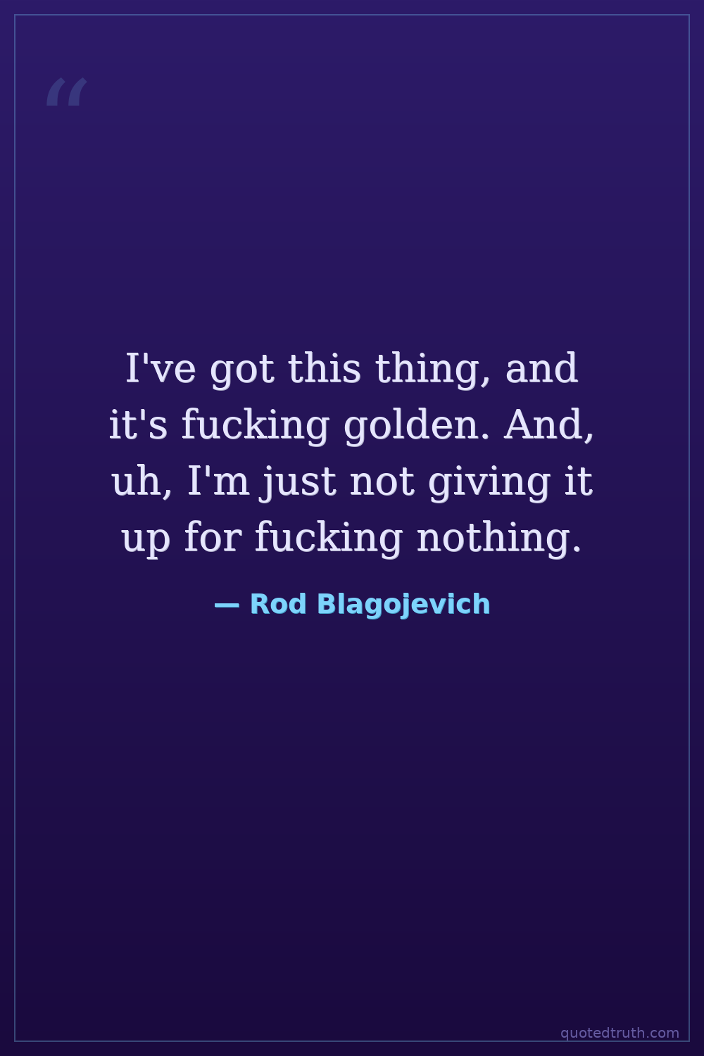 I've got this thing, and it's fucking golden. And, uh, I'm just not giving it up for fucking nothing.