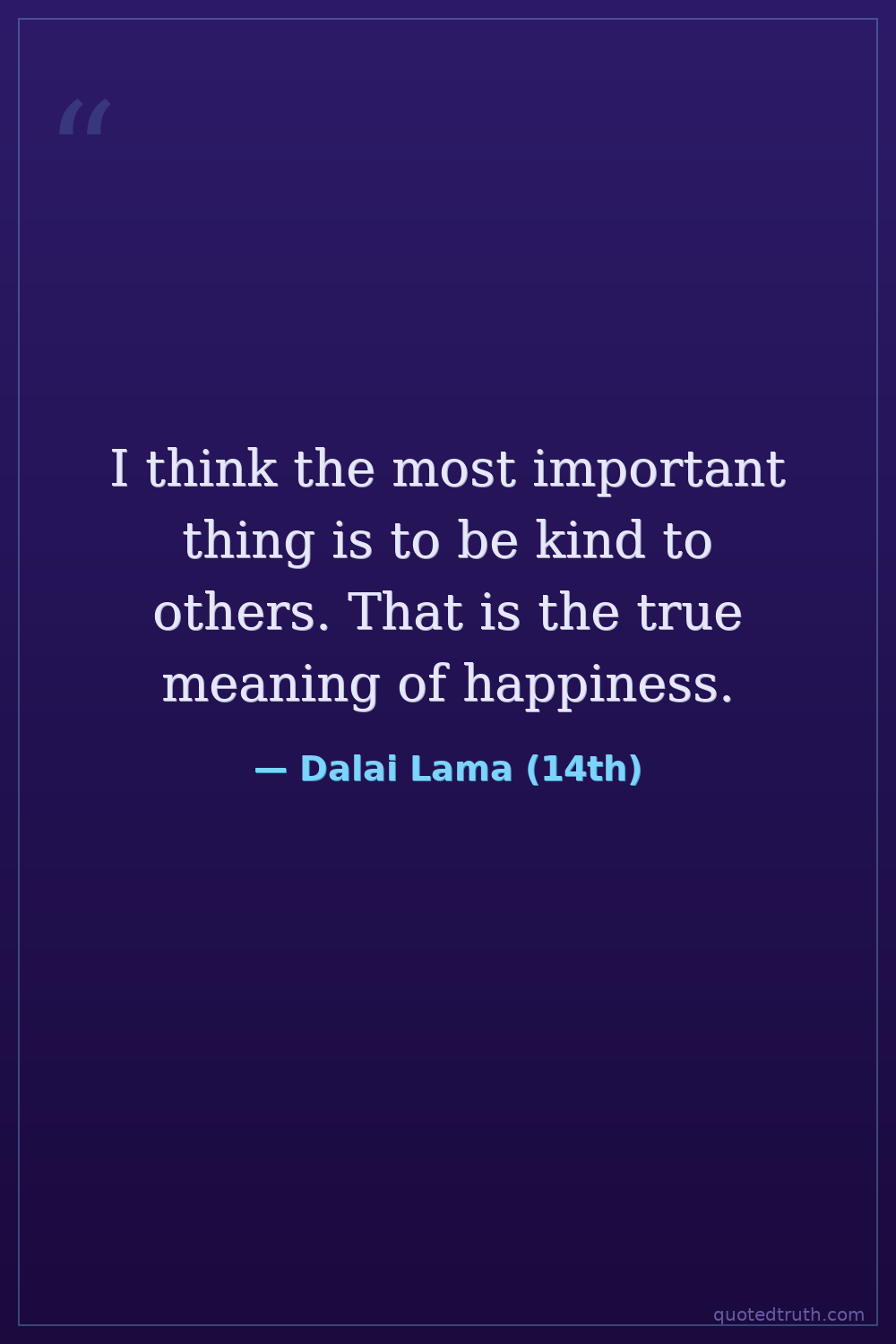 I think the most important thing is to be kind to others. That is the true meaning of happiness.