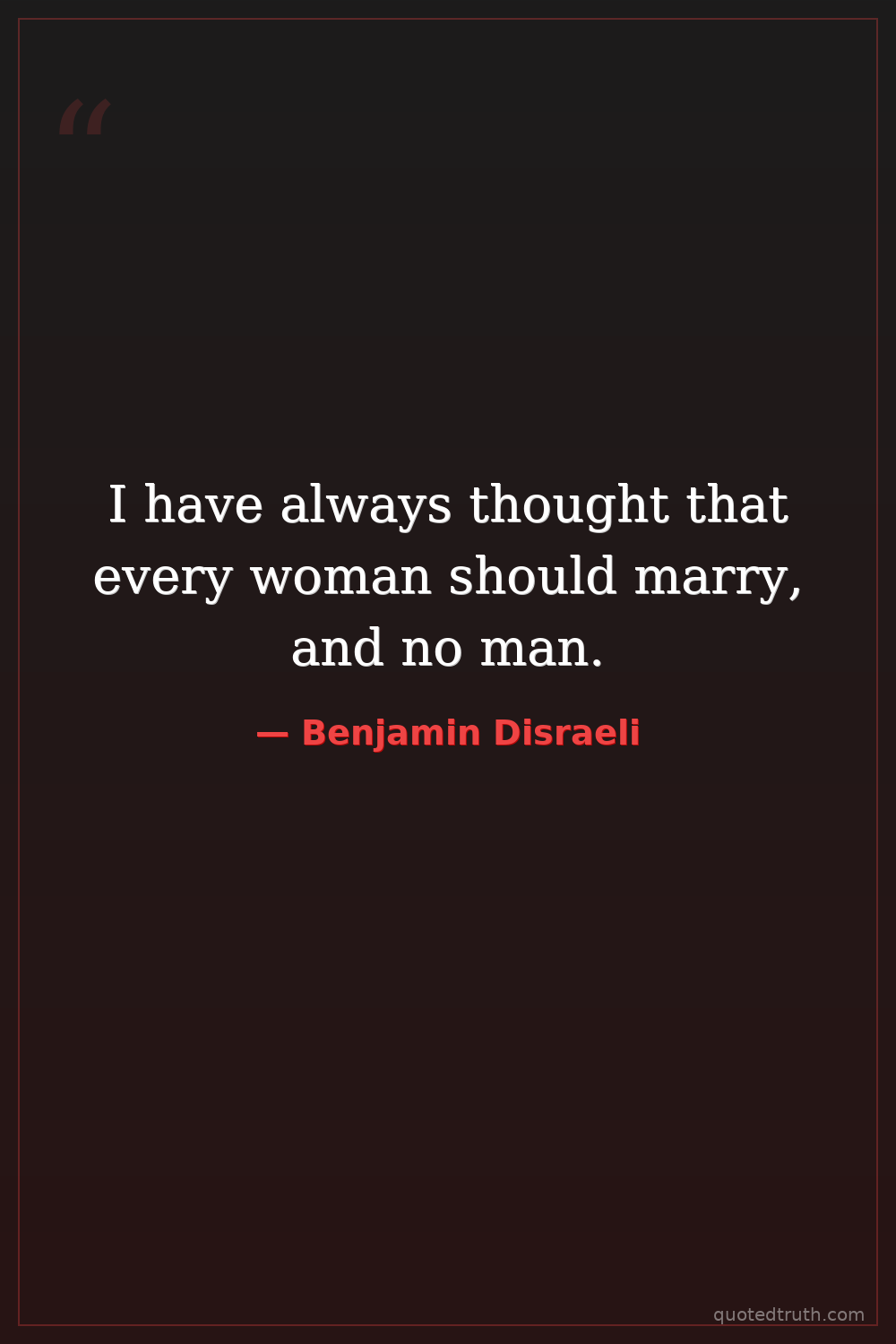 I have always thought that every woman should marry, and no man.