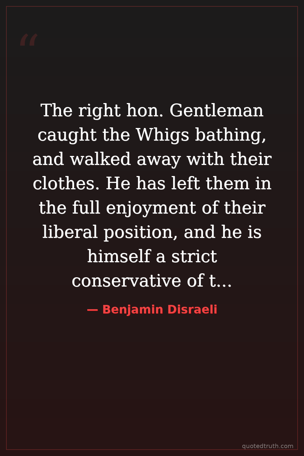 The right hon. Gentleman caught the Whigs bathing, and walked away with their clothes. He has left them in the full enjoyment of their liberal position, and he is himself a strict conservative of their garments.