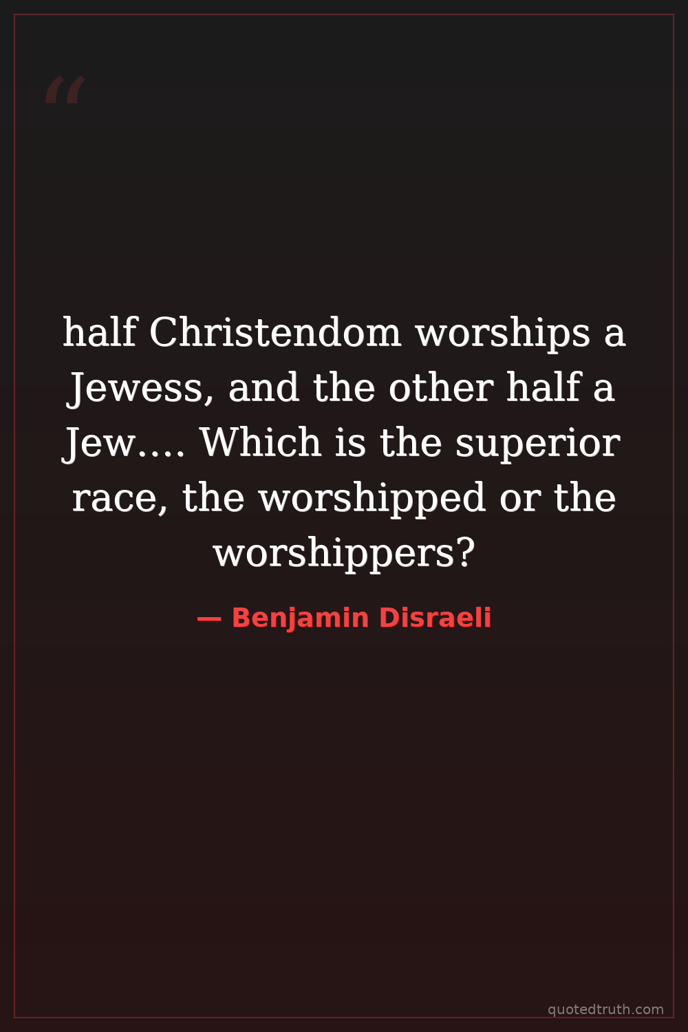 half Christendom worships a Jewess, and the other half a Jew…. Which is the superior race, the worshipped or the worshippers?