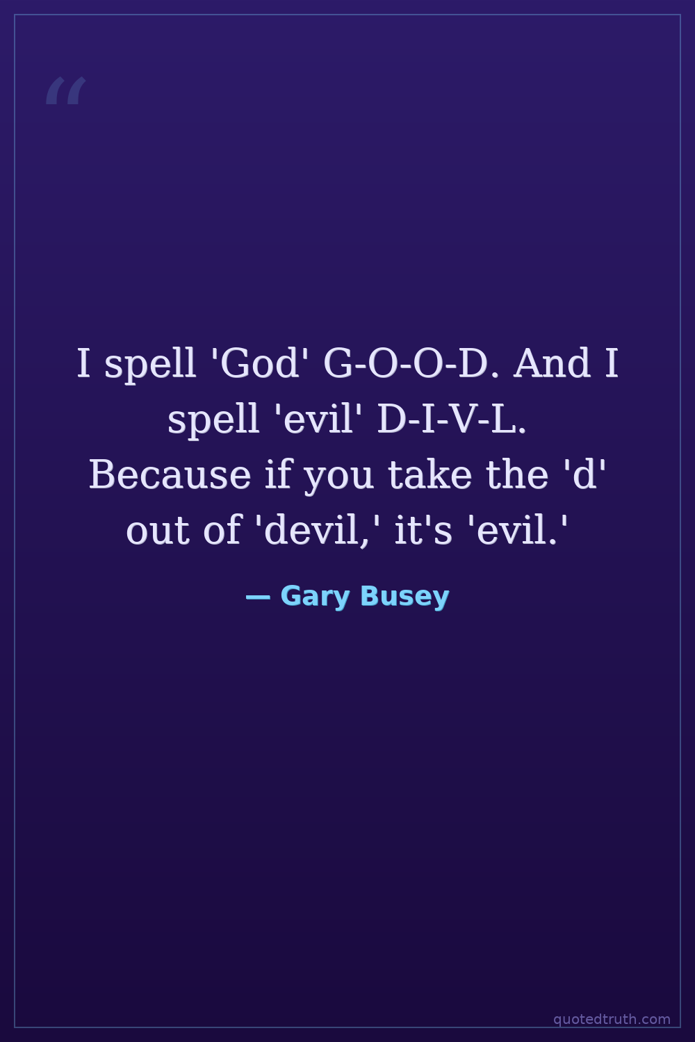 I spell 'God' G-O-O-D. And I spell 'evil' D-I-V-L. Because if you take the 'd' out of 'devil,' it's 'evil.'