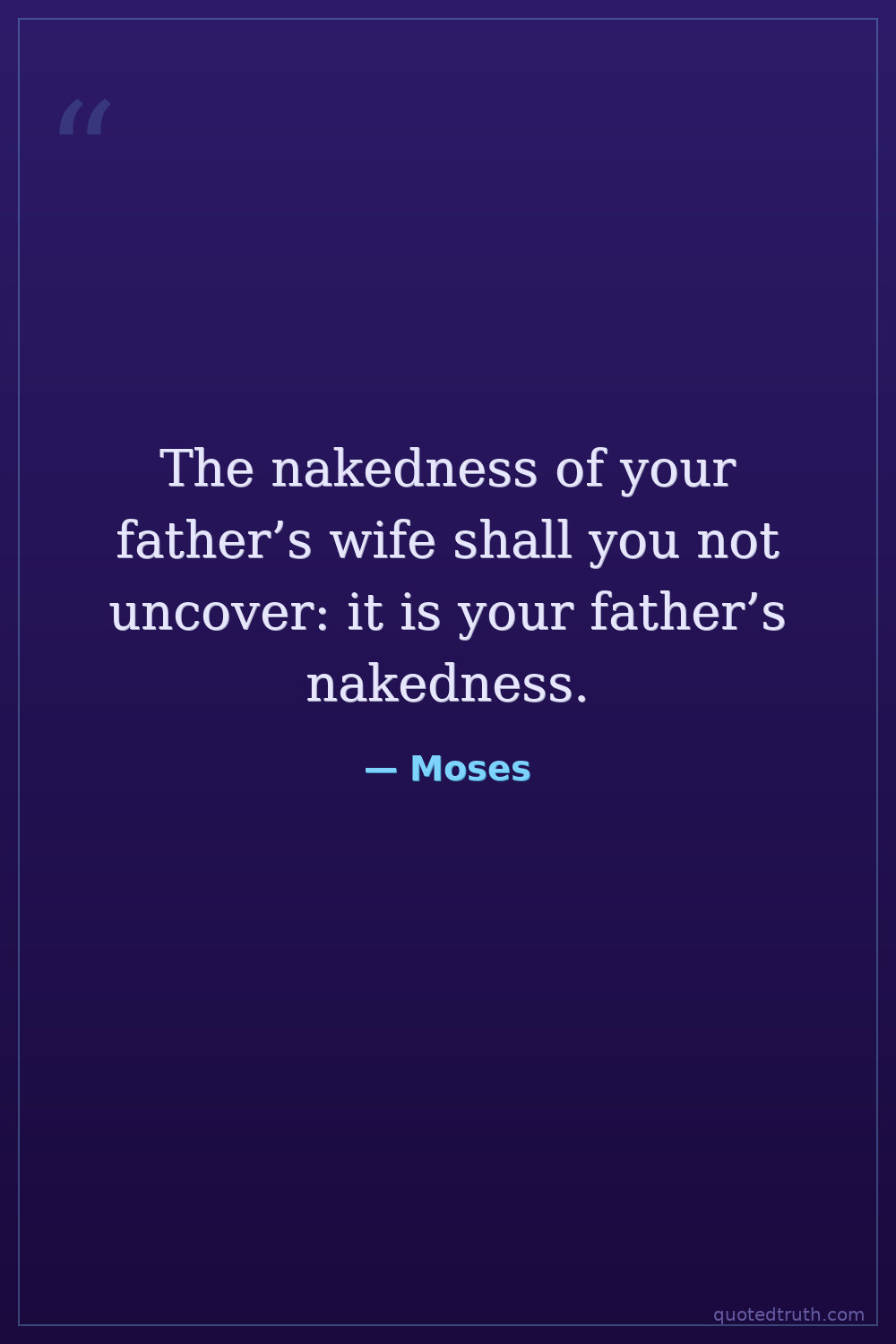 The nakedness of your father’s wife shall you not uncover: it is your father’s nakedness.