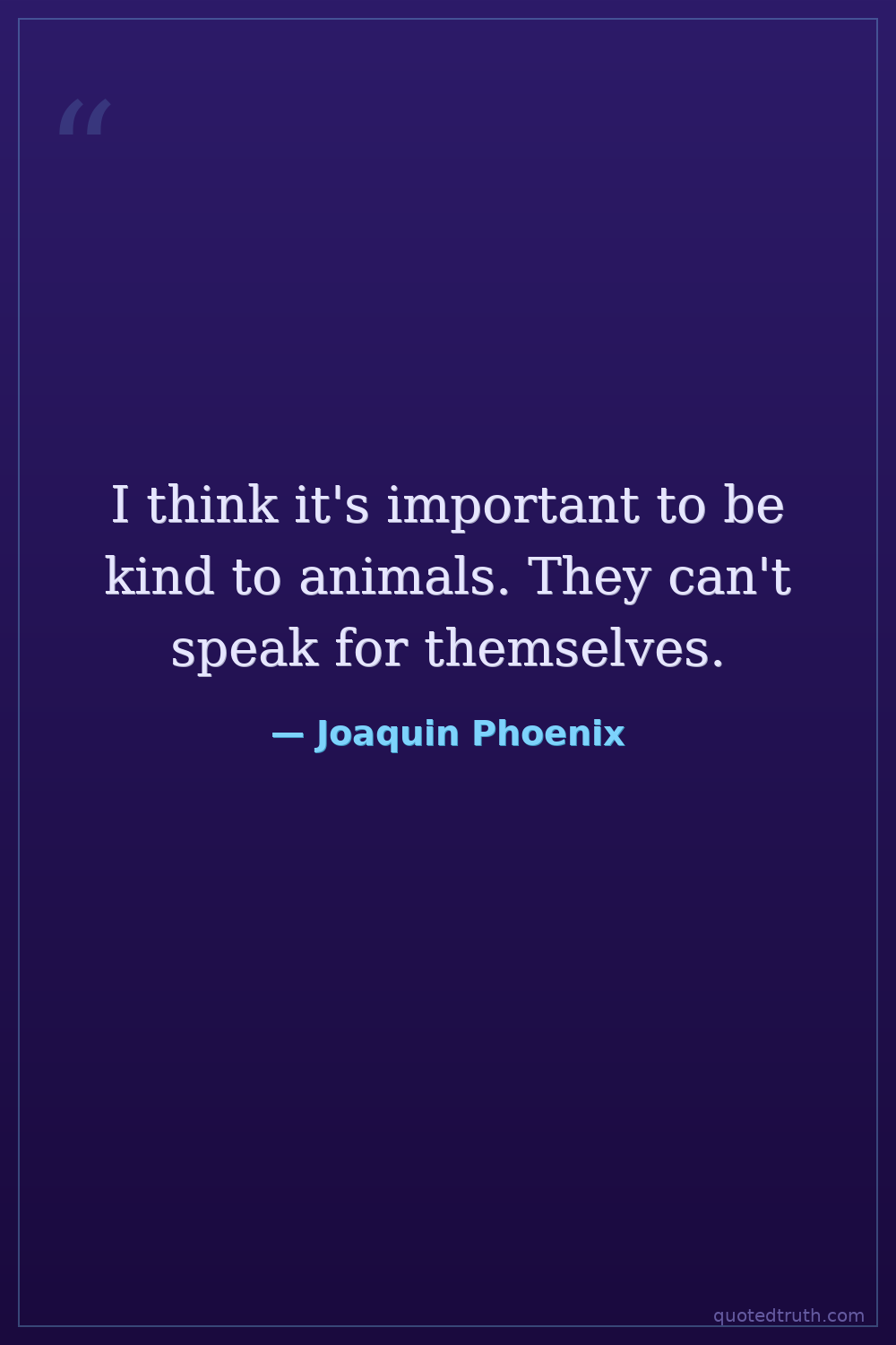 I think it's important to be kind to animals. They can't speak for themselves.