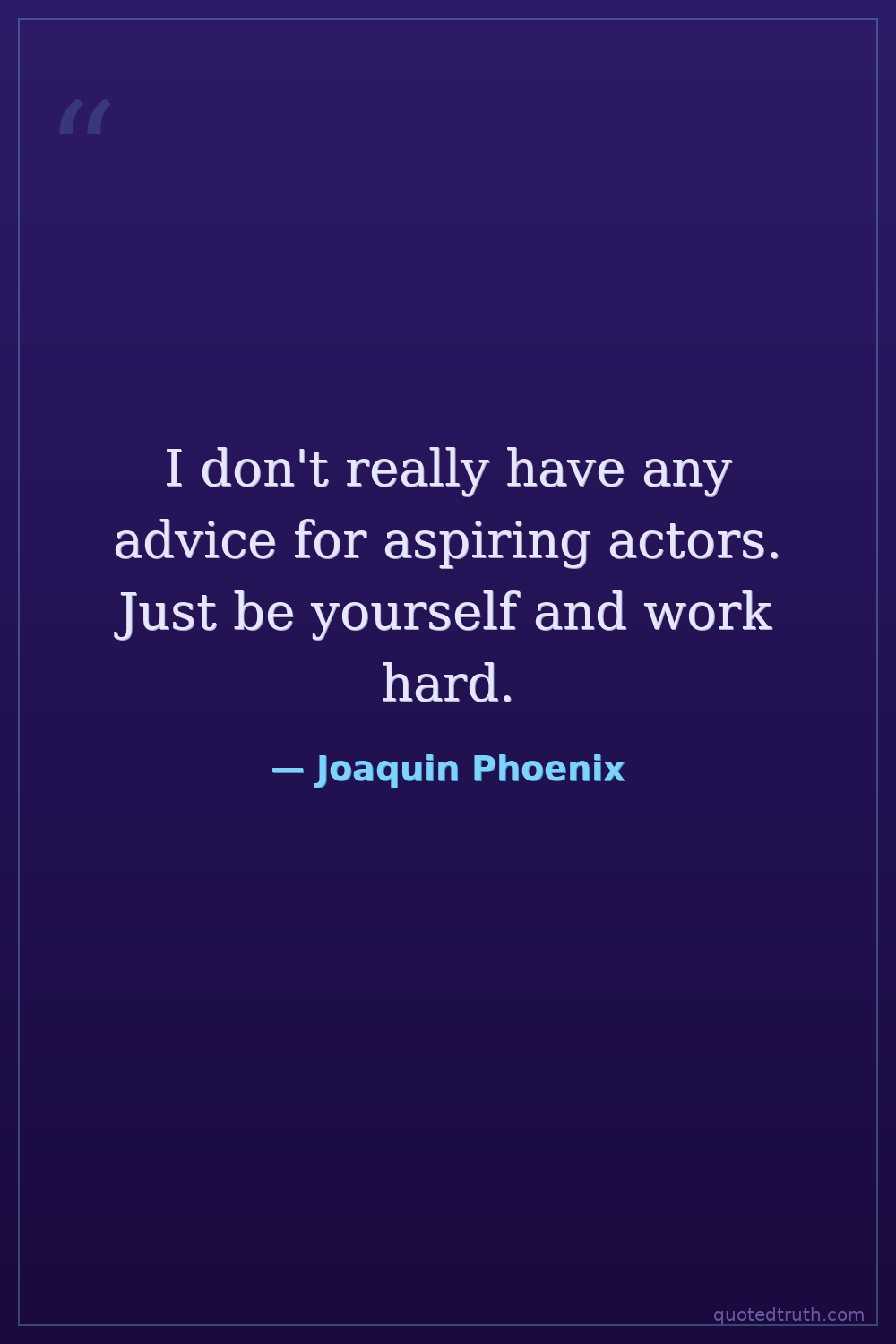 I don't really have any advice for aspiring actors. Just be yourself and work hard.