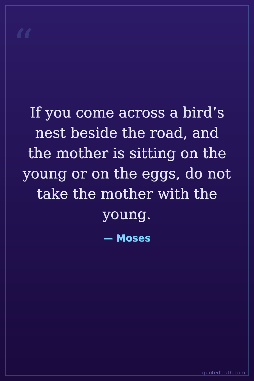 If you come across a bird’s nest beside the road, and the mother is sitting on the young or on the eggs, do not take the mother with the young.