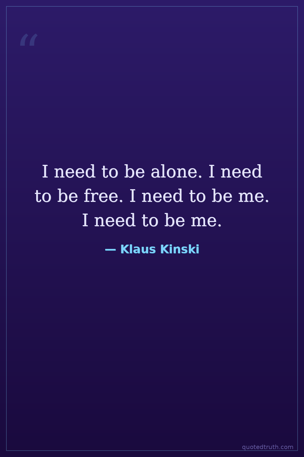 I need to be alone. I need to be free. I need to be me. I need to be me.
