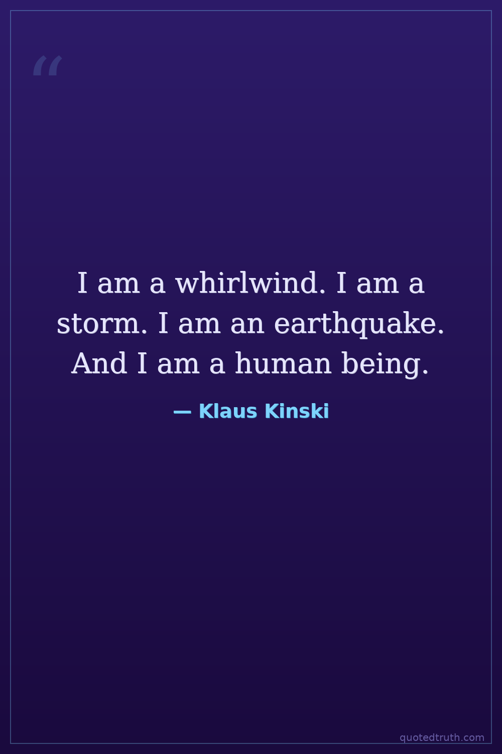 I am a whirlwind. I am a storm. I am an earthquake. And I am a human being.