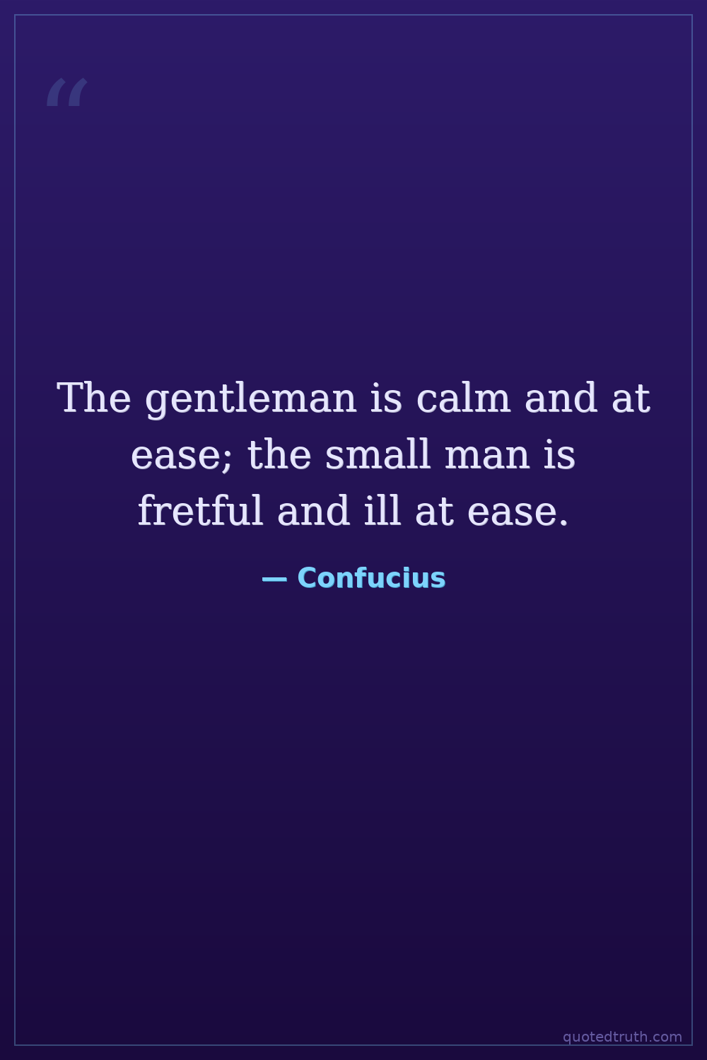 "The Master said, 'The superior man is dignified, but not proud. The mean man is proud, but not dignified.'"