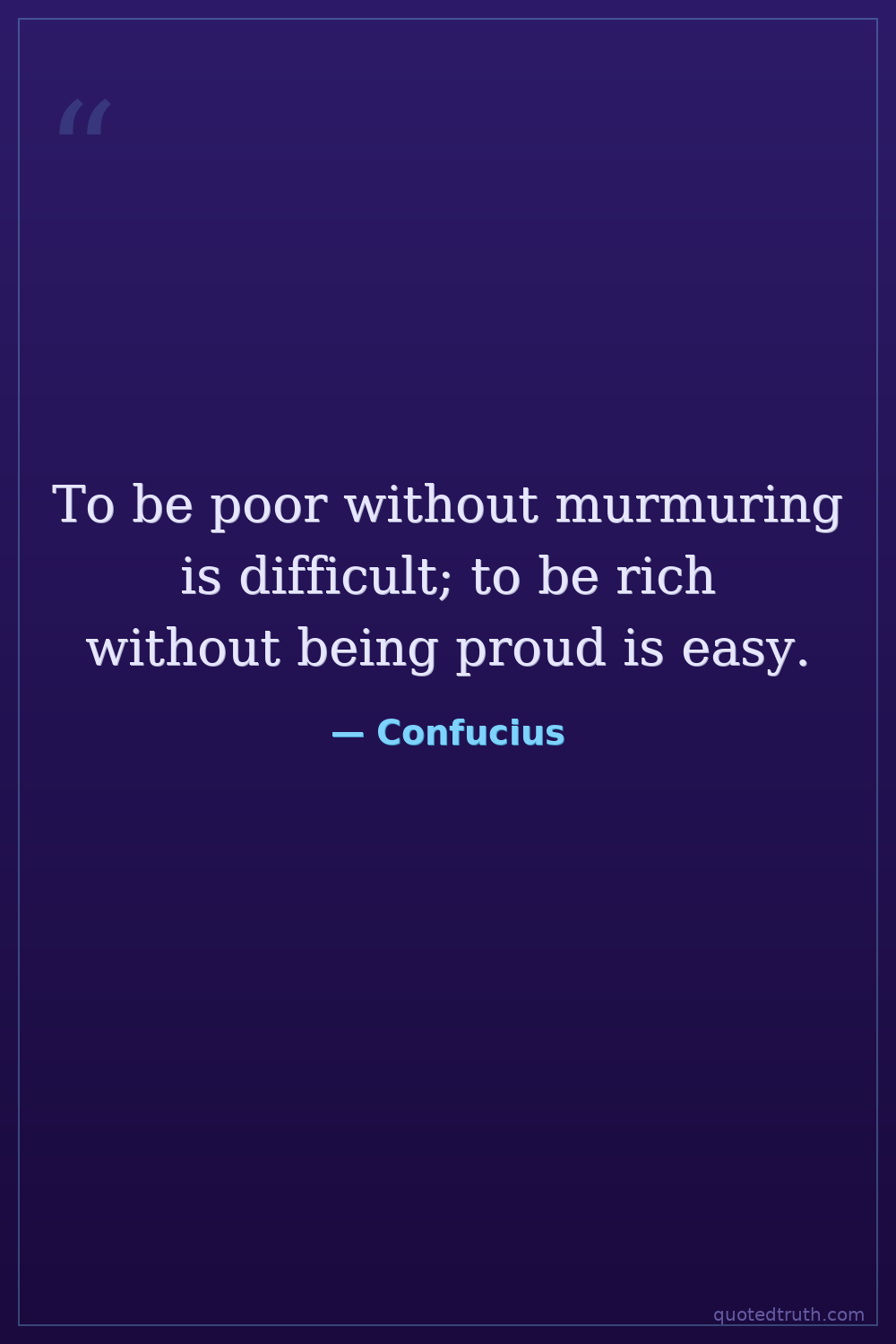 To be poor without murmuring is difficult; to be rich without being proud is easy.