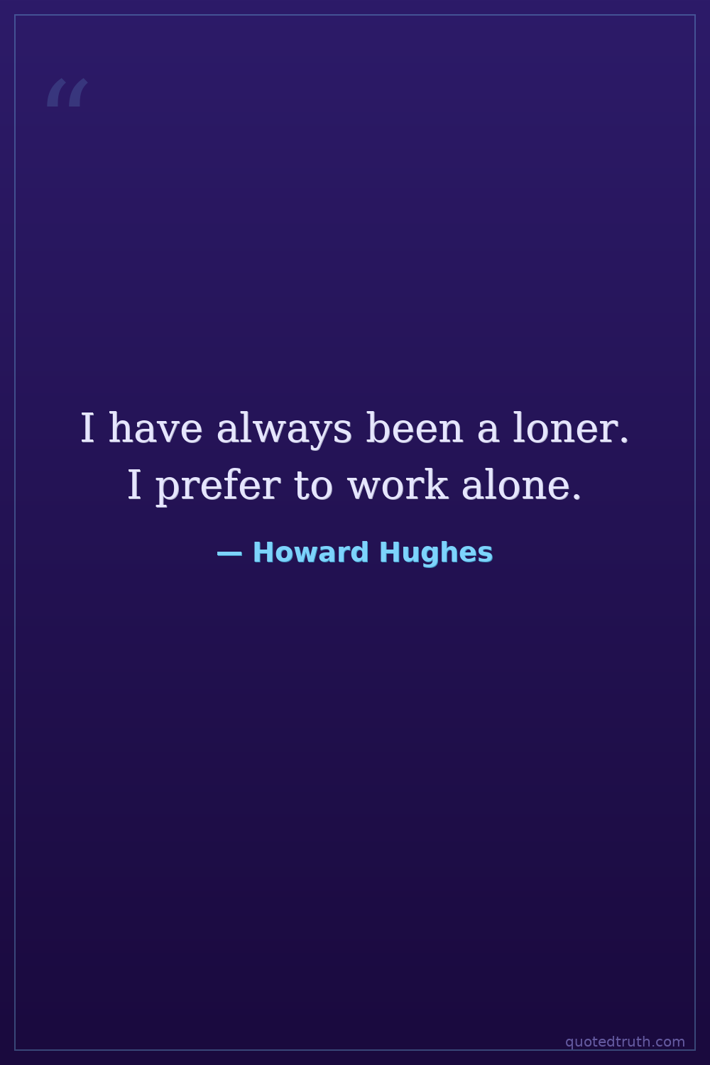 I have always been a loner. I prefer to work alone.