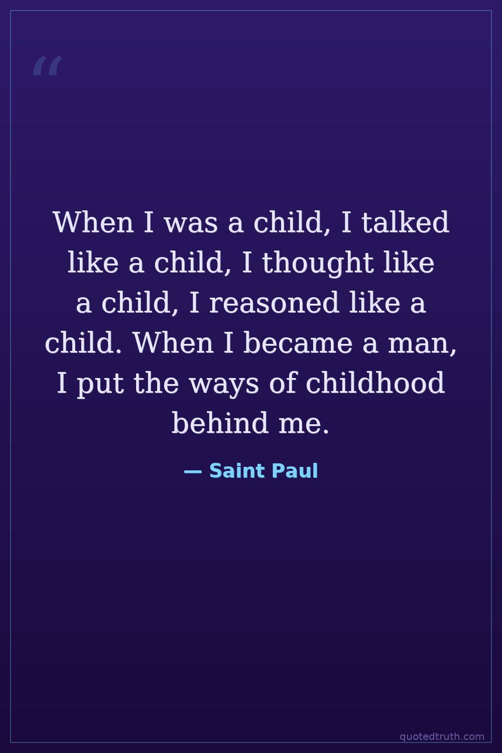 When I was a child, I talked like a child, I thought like a child, I reasoned like a child. When I became a man, I put the ways of childhood behind me.