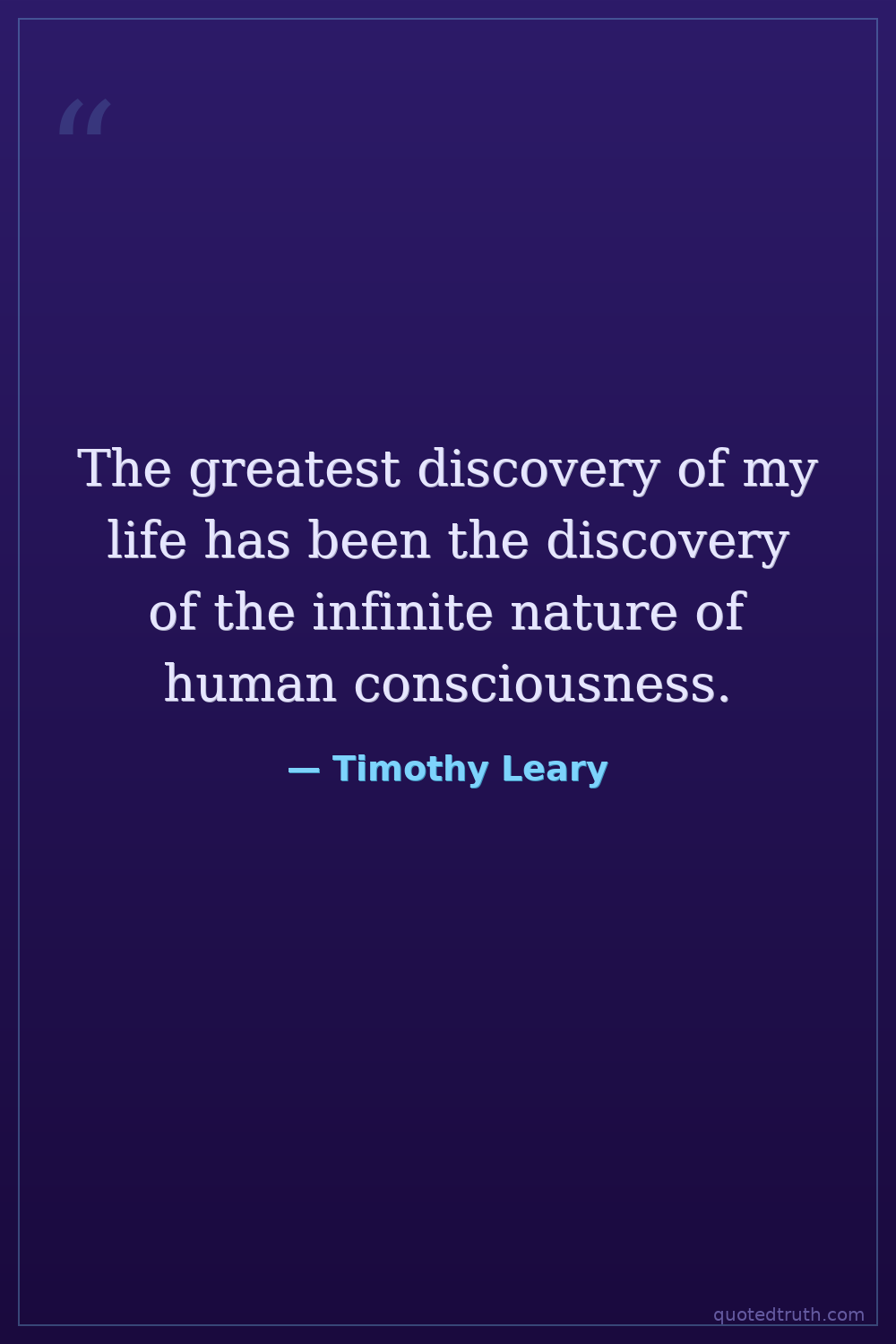 The greatest discovery of my life has been the discovery of the infinite nature of human consciousness.