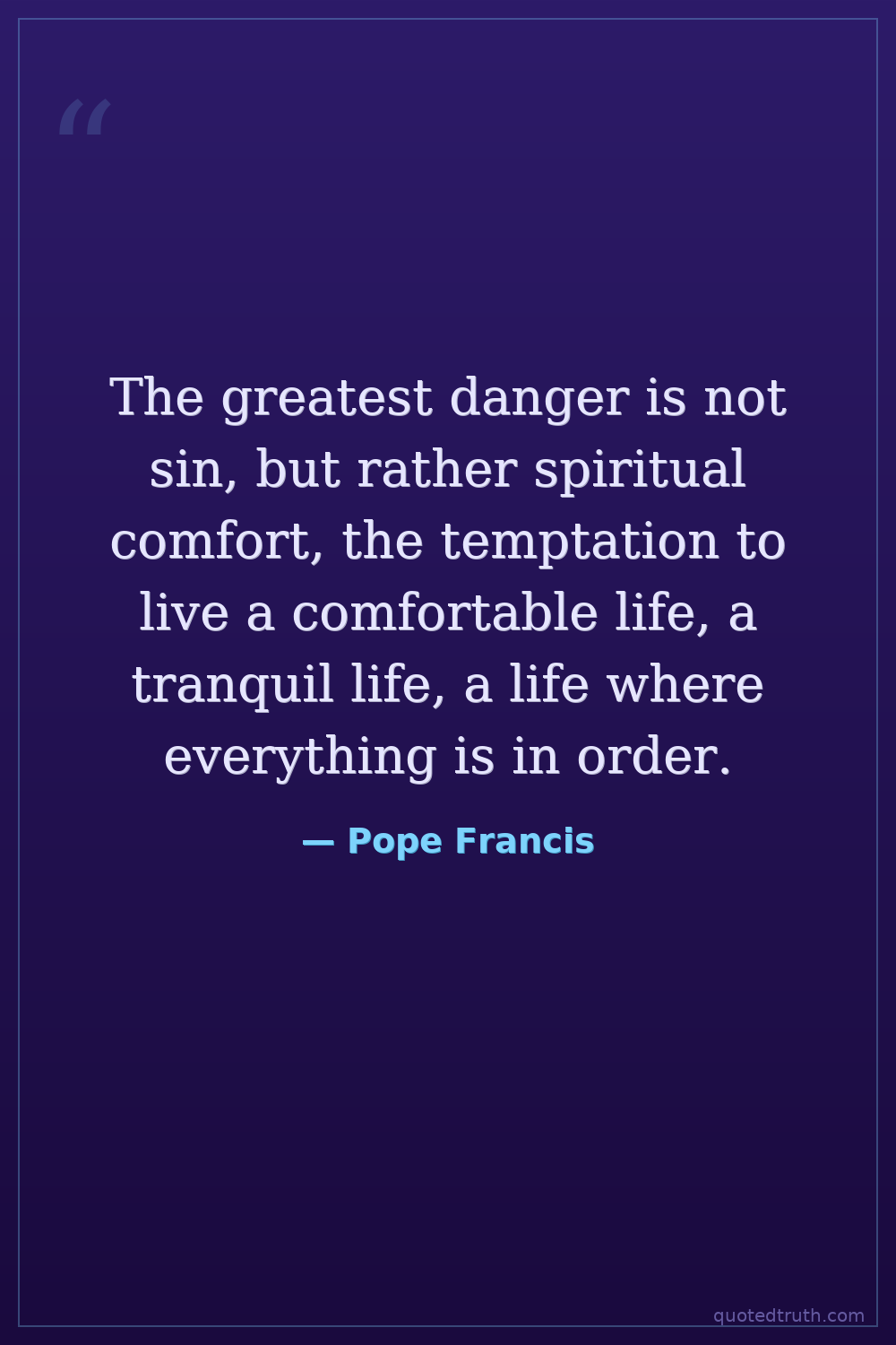 The greatest danger is not sin, but rather spiritual comfort, the temptation to live a comfortable life, a tranquil life, a life where everything is in order.