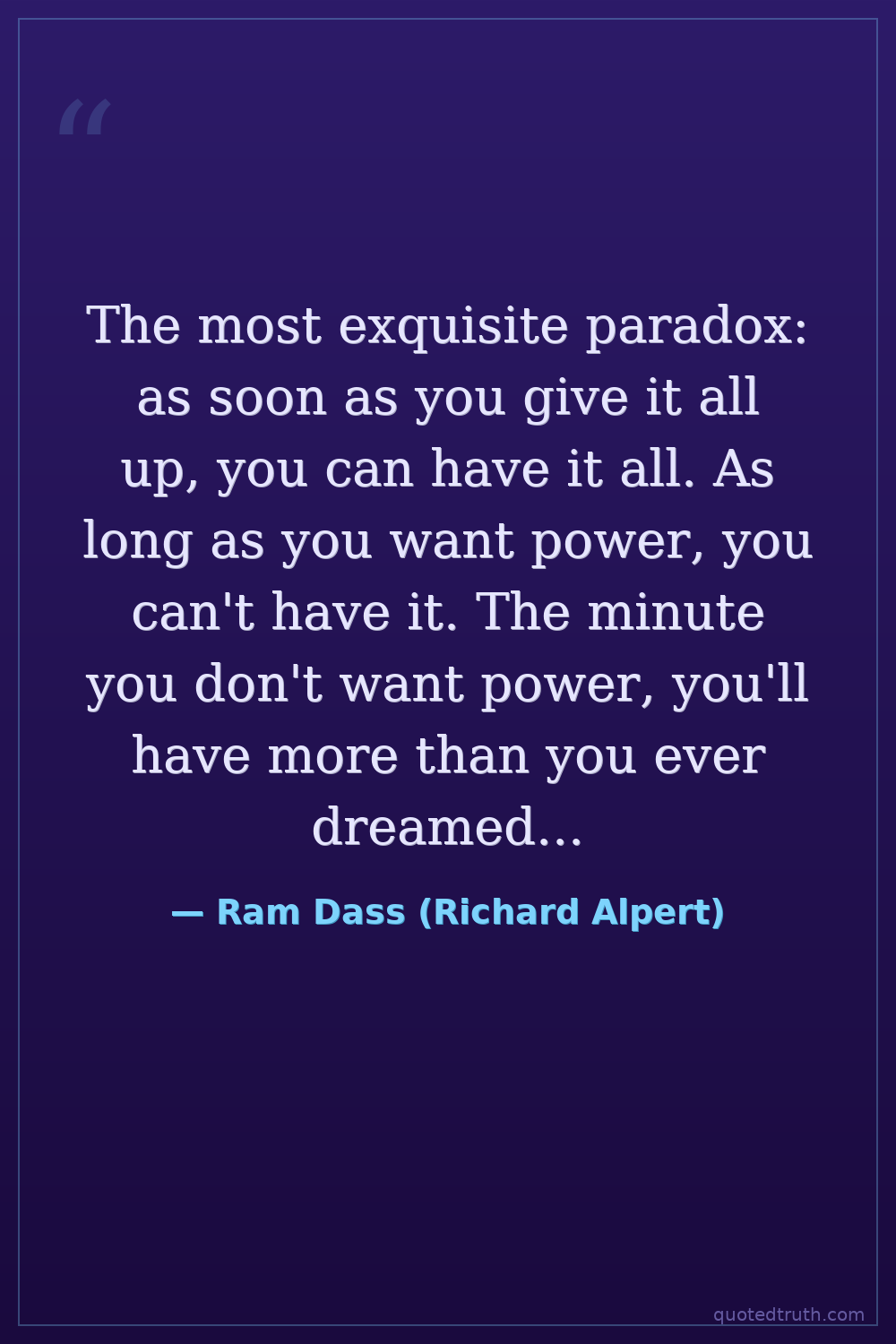 The most exquisite paradox: as soon as you give it all up, you can have it all. As long as you want power, you can't have it. The minute you don't want power, you'll have more than you ever dreamed possible.