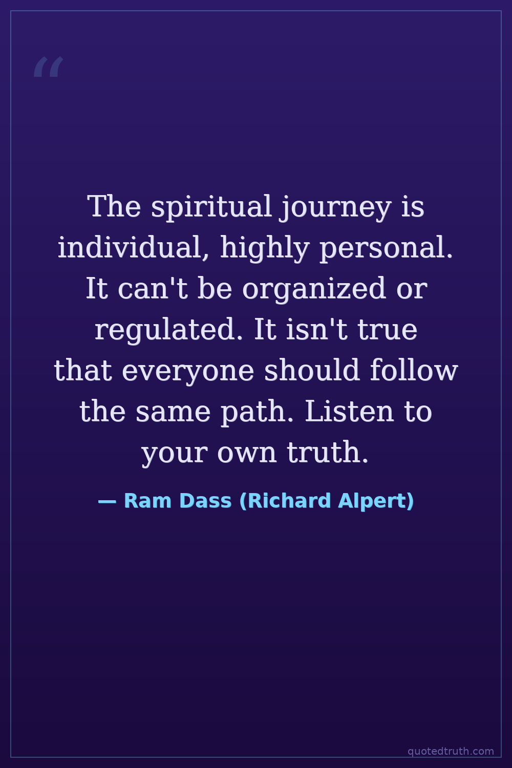 The spiritual journey is individual, highly personal. It can't be organized or regulated. It isn't true that everyone should follow the same path. Listen to your own truth.