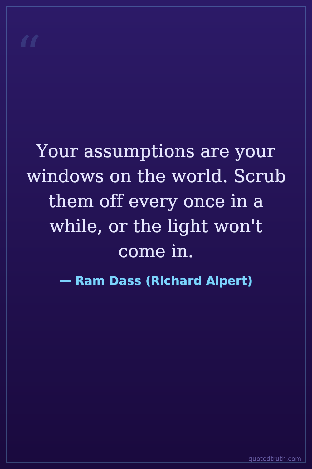 Your assumptions are your windows on the world. Scrub them off every once in a while, or the light won't come in.
