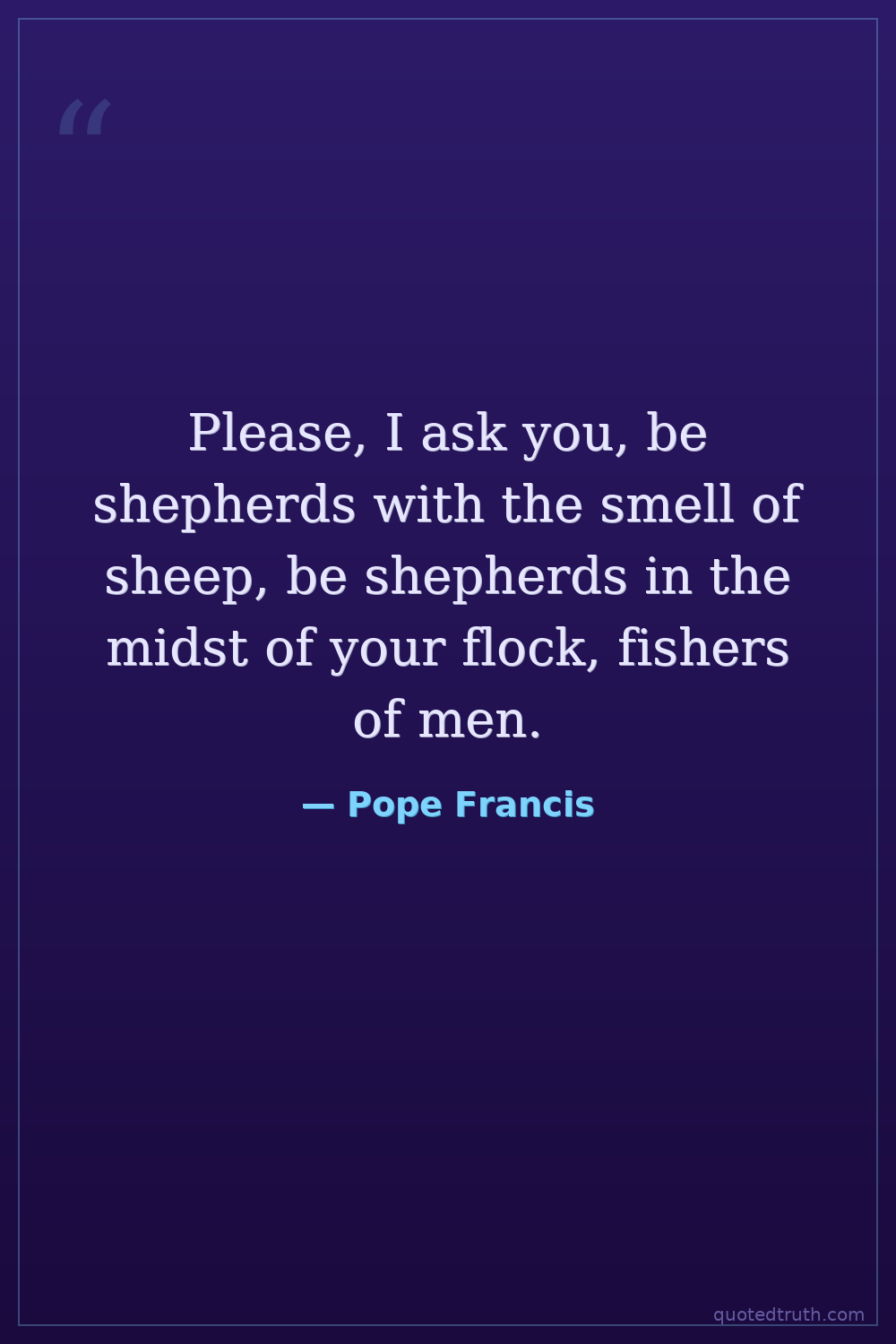 Please, I ask you, be shepherds with the smell of sheep, be shepherds in the midst of your flock, fishers of men.