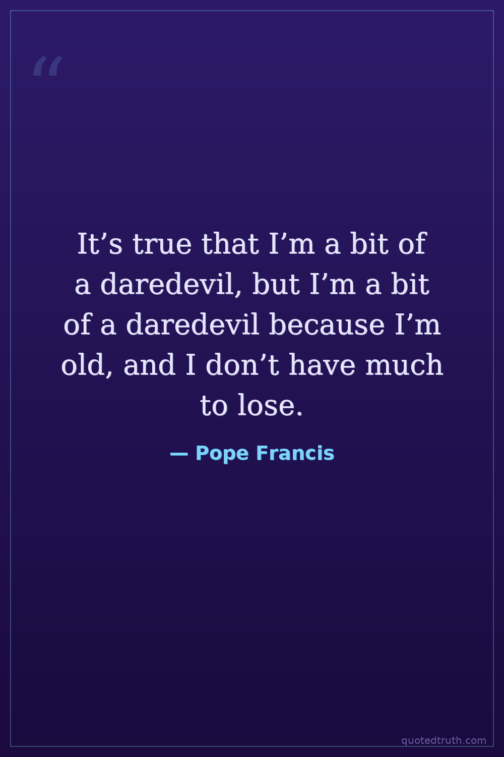 It’s true that I’m a bit of a daredevil, but I’m a bit of a daredevil because I’m old, and I don’t have much to lose.