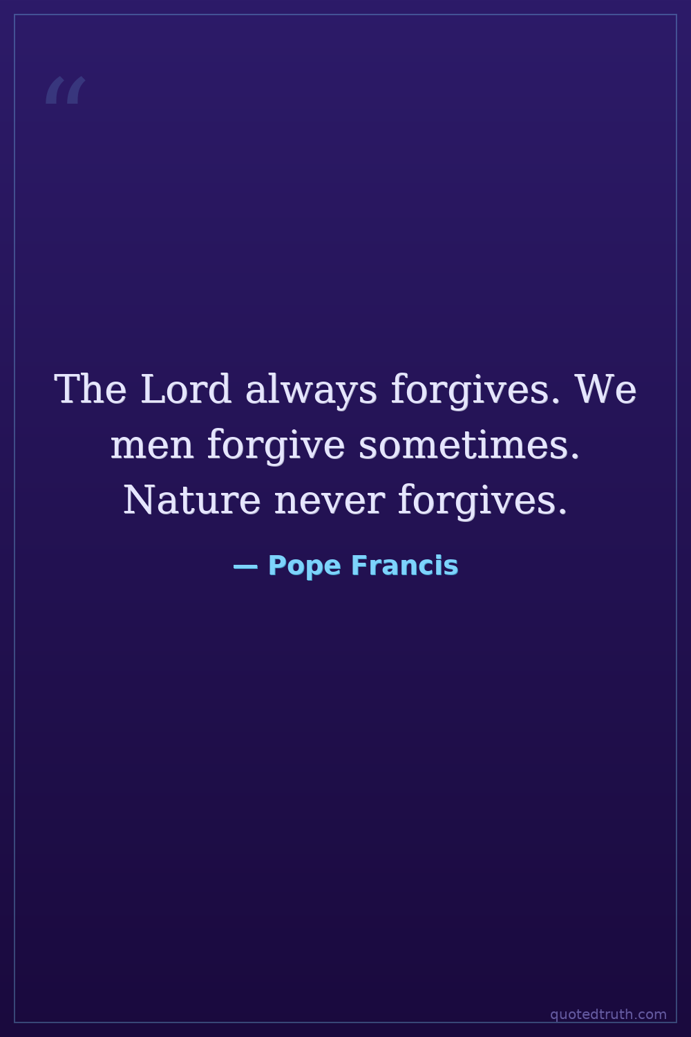 The Lord always forgives. We men forgive sometimes. Nature never forgives.