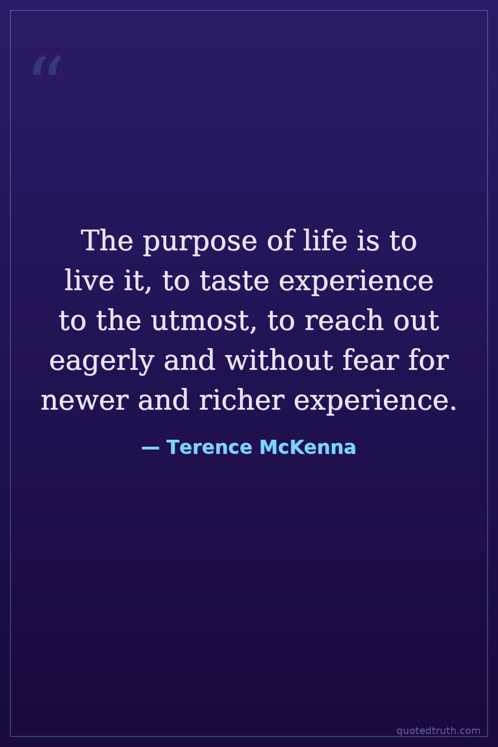 The purpose of life is to live it, to taste experience to the utmost, to reach out eagerly and without fear for newer and richer experience.