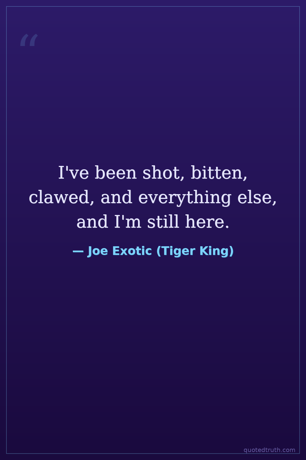 I've been shot, bitten, clawed, and everything else, and I'm still here.