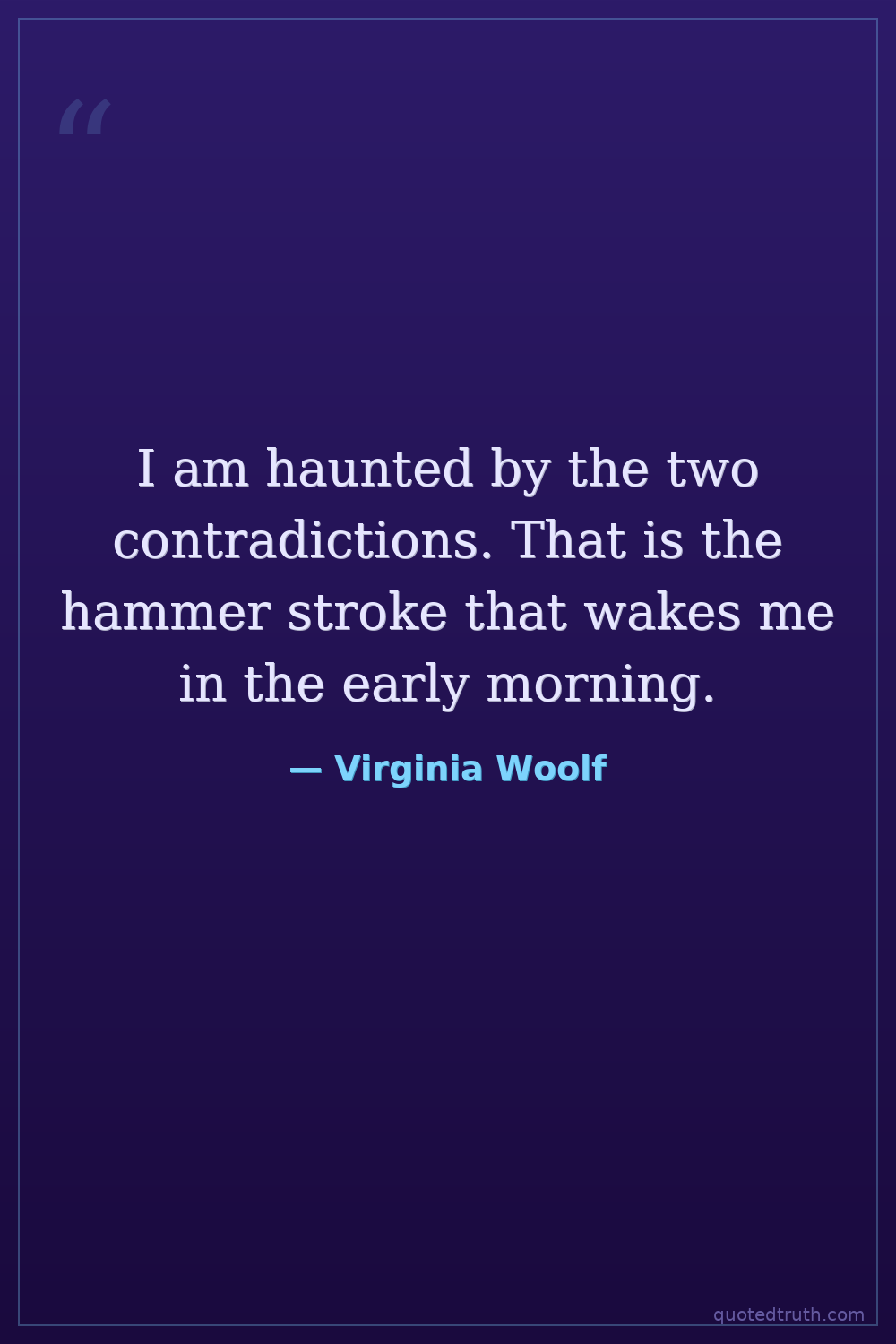 I am haunted by the two contradictions. That is the hammer stroke that wakes me in the early morning.