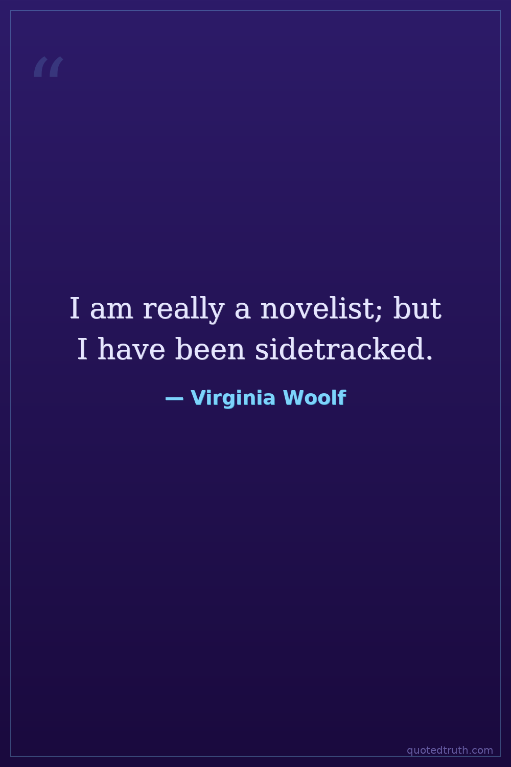 I am really a novelist; but I have been sidetracked.