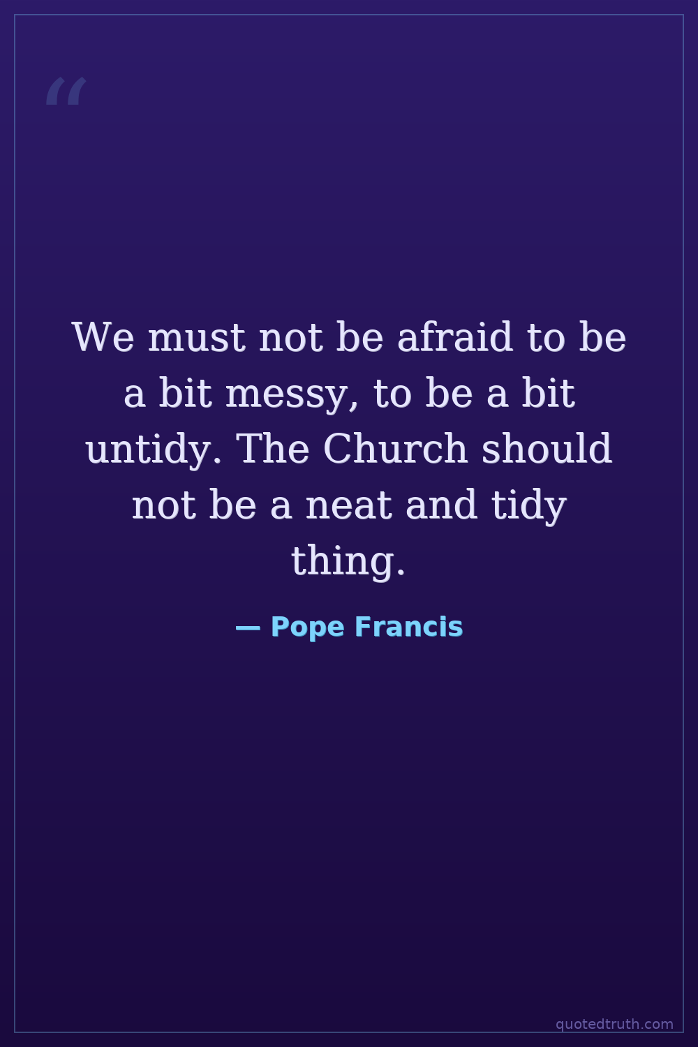 We must not be afraid to be a bit messy, to be a bit untidy. The Church should not be a neat and tidy thing.