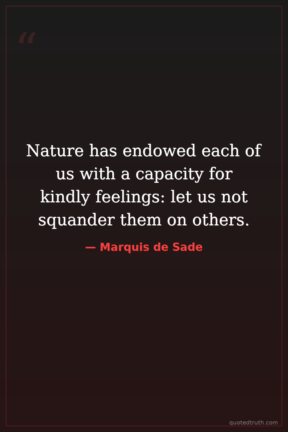 Nature has endowed each of us with a capacity for kindly feelings: let us not squander them on others.