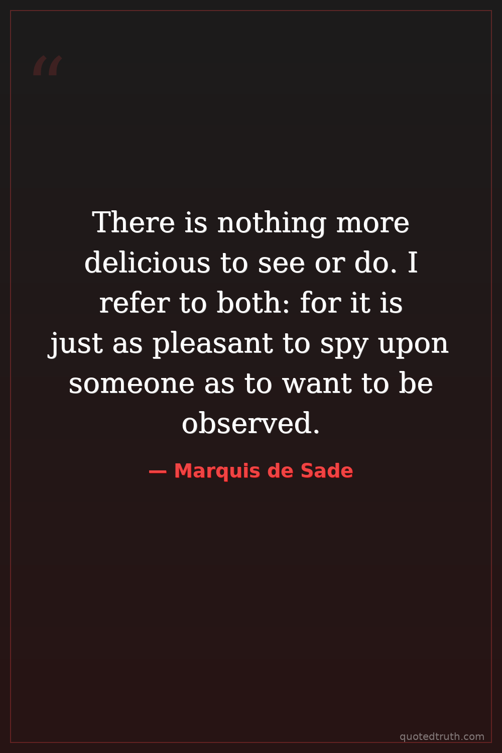 There is nothing more delicious to see or do. I refer to both: for it is just as pleasant to spy upon someone as to want to be observed.