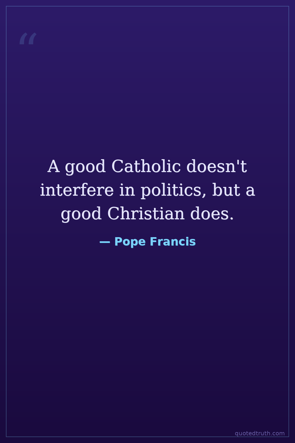 A good Catholic doesn't interfere in politics, but a good Christian does.
