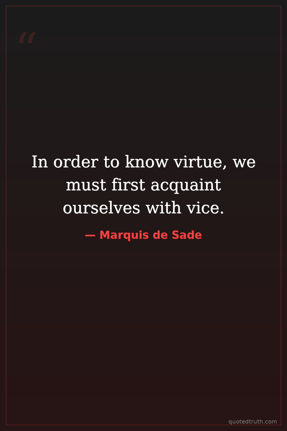 In order to know virtue, we must first acquaint ourselves with vice.