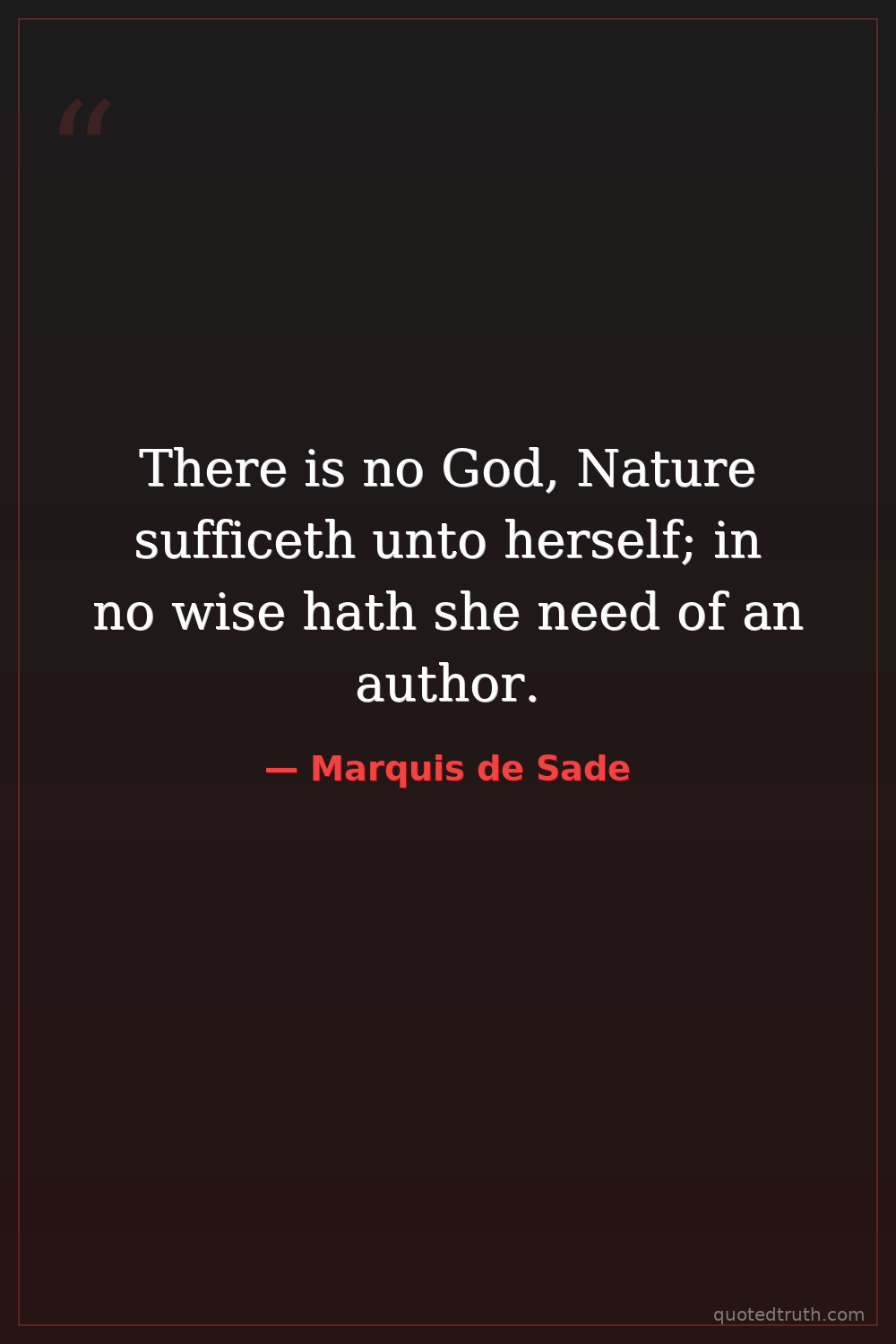 There is no God, Nature sufficeth unto herself; in no wise hath she need of an author.
