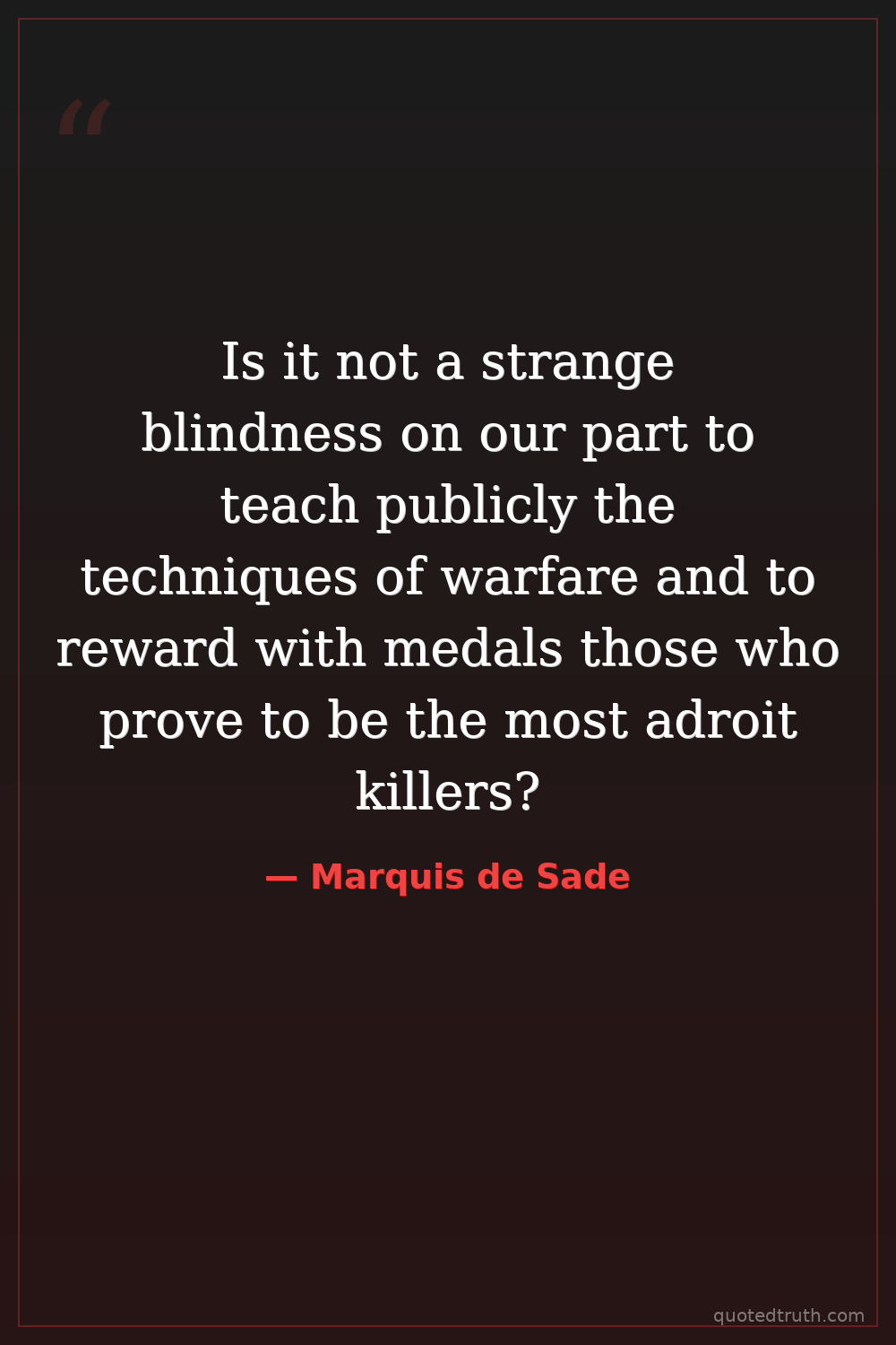 Is it not a strange blindness on our part to teach publicly the techniques of warfare and to reward with medals those who prove to be the most adroit killers?