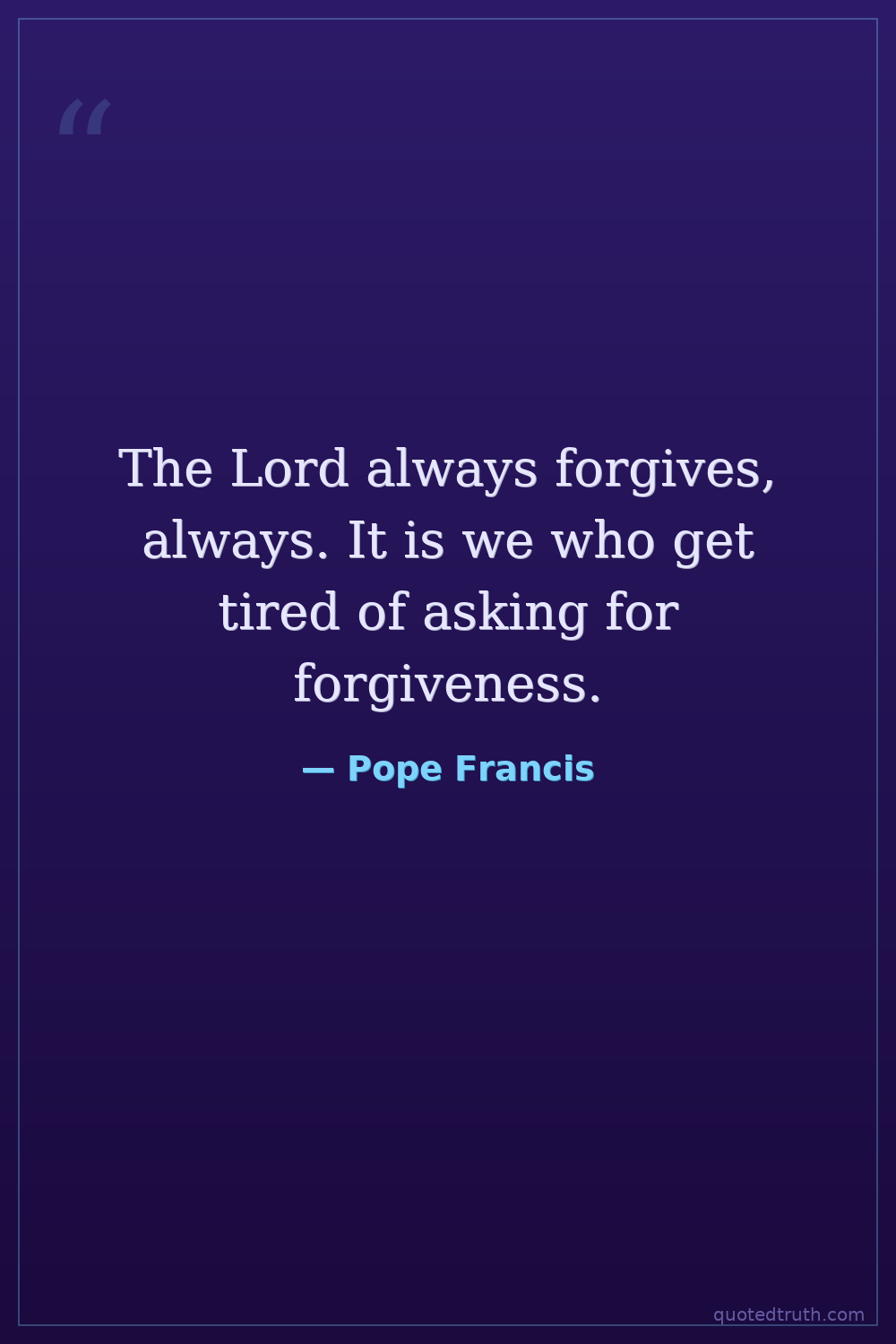 The Lord always forgives, always. It is we who get tired of asking for forgiveness.