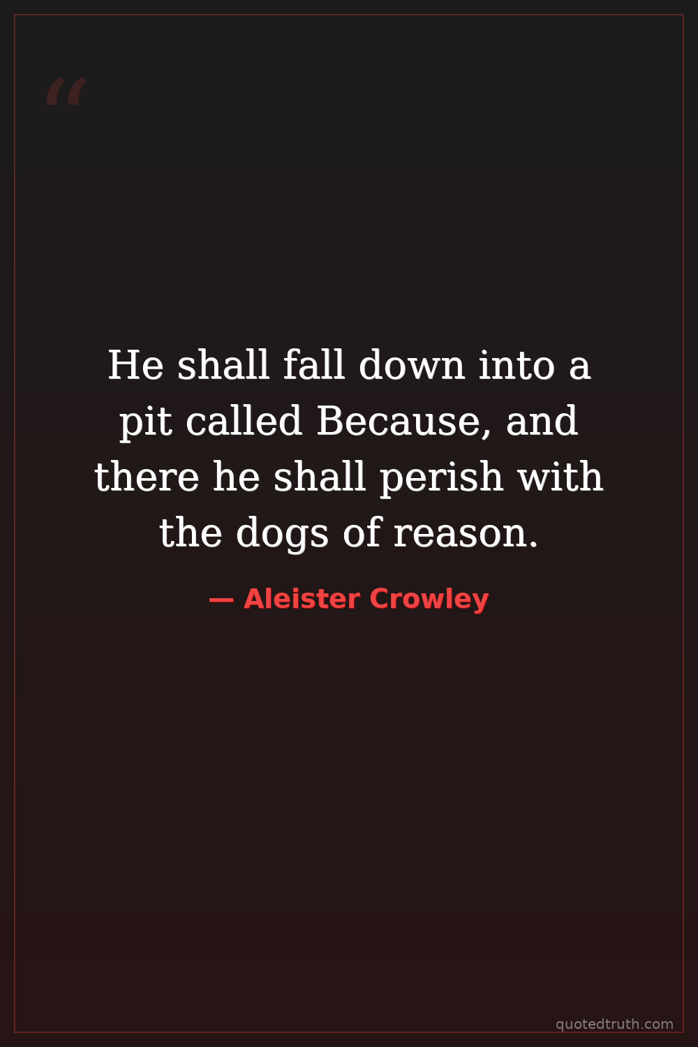 He shall fall down into a pit called Because, and there he shall perish with the dogs of reason.