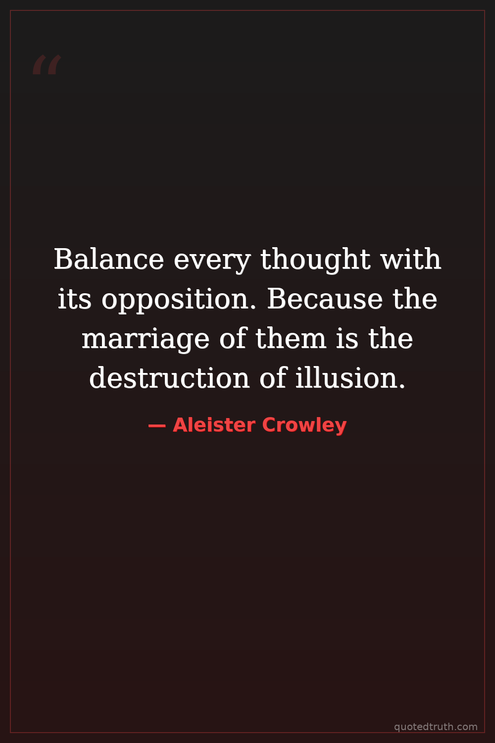 Balance every thought with its opposition. Because the marriage of them is the destruction of illusion.