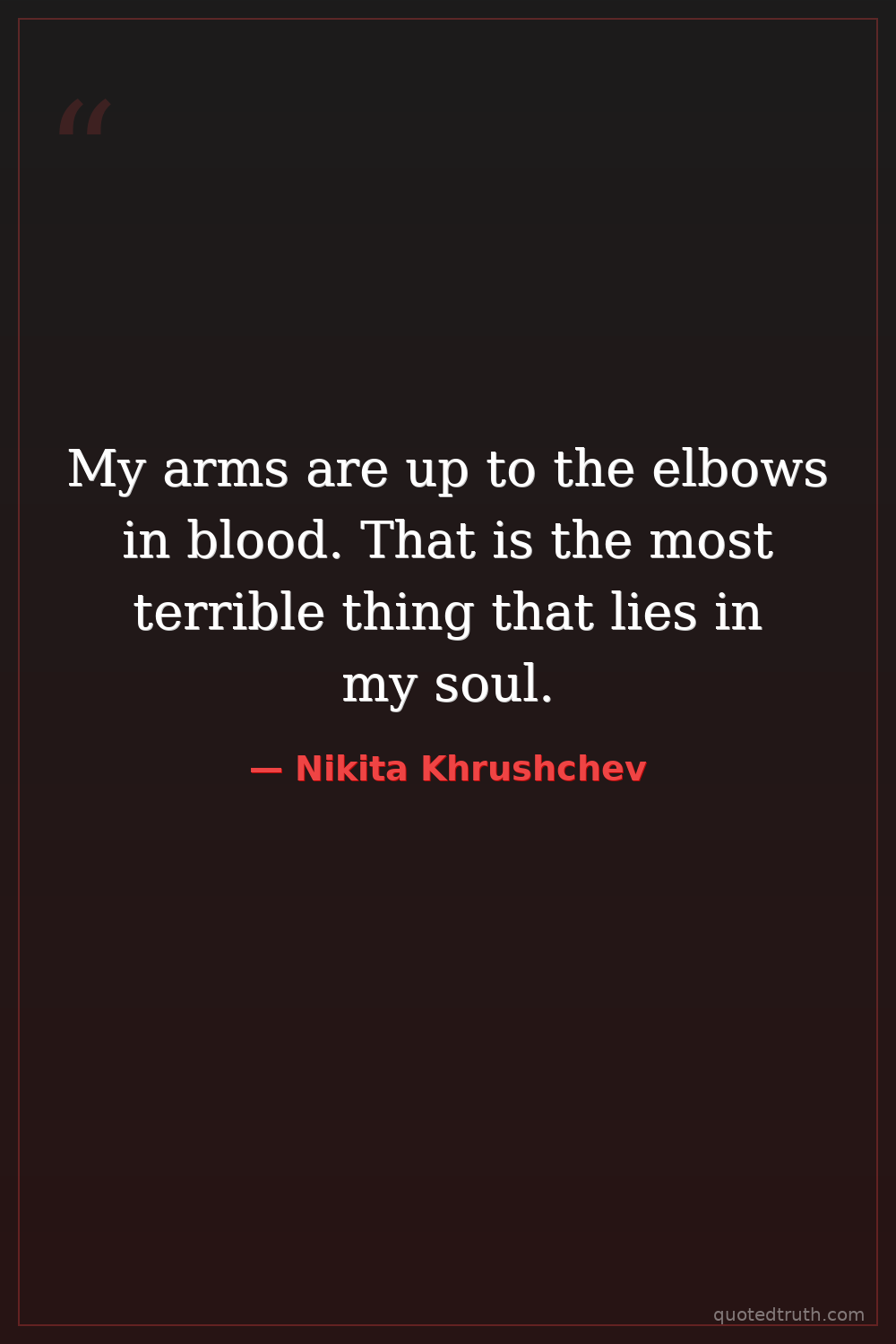 My arms are up to the elbows in blood. That is the most terrible thing that lies in my soul.