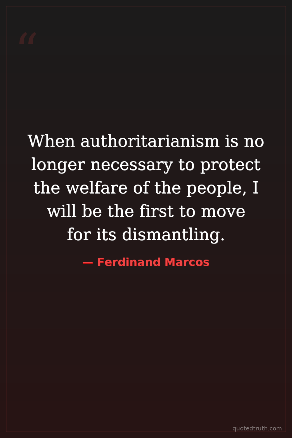 When authoritarianism is no longer necessary to protect the welfare of the people, I will be the first to move for its dismantling.