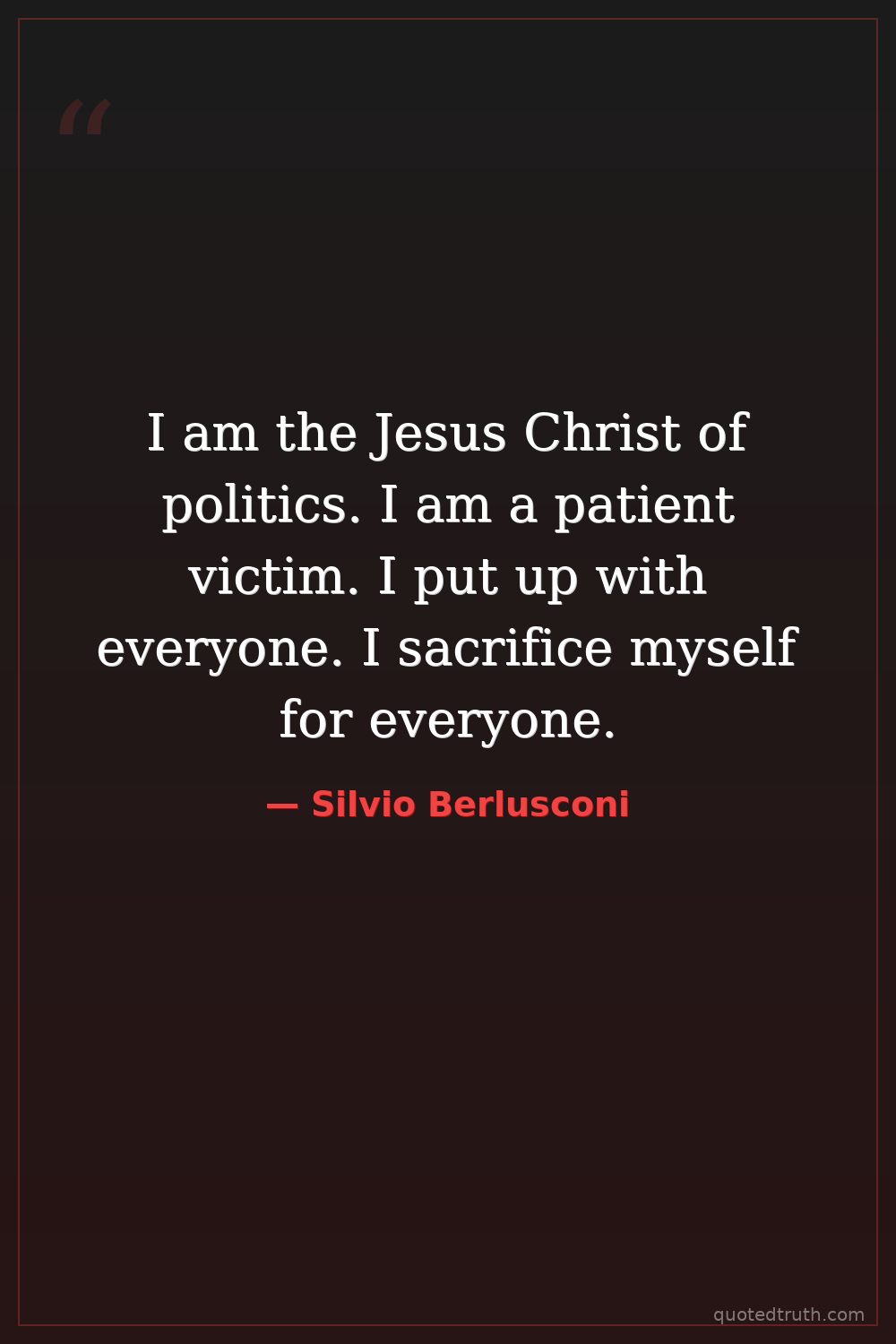 I am the Jesus Christ of politics. I am a patient victim. I put up with everyone. I sacrifice myself for everyone.