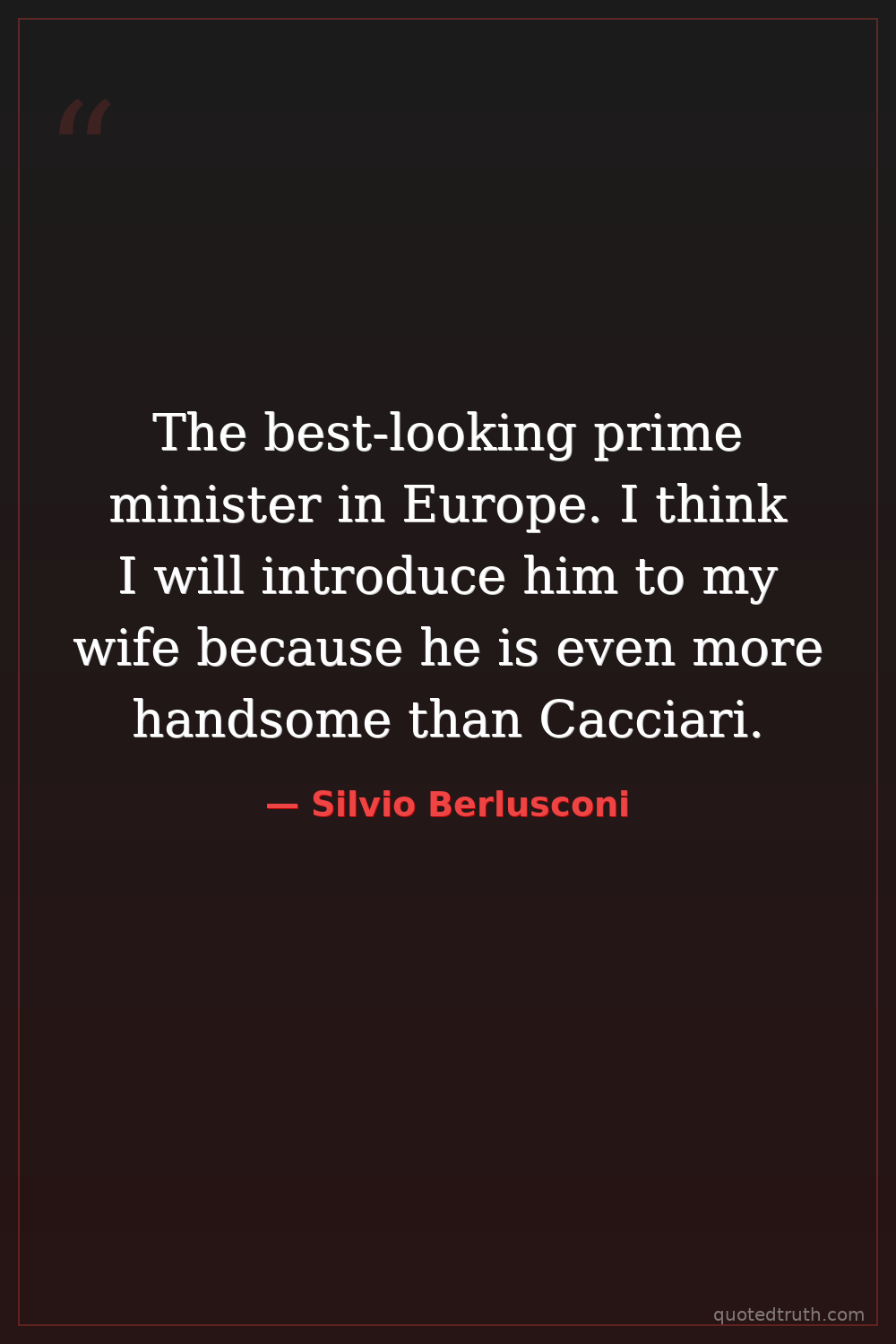 The best-looking prime minister in Europe. I think I will introduce him to my wife because he is even more handsome than Cacciari.